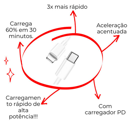Carregador Para iPhone 15 16 Pro Max Turbo 35W Completo Cabo 1Metros