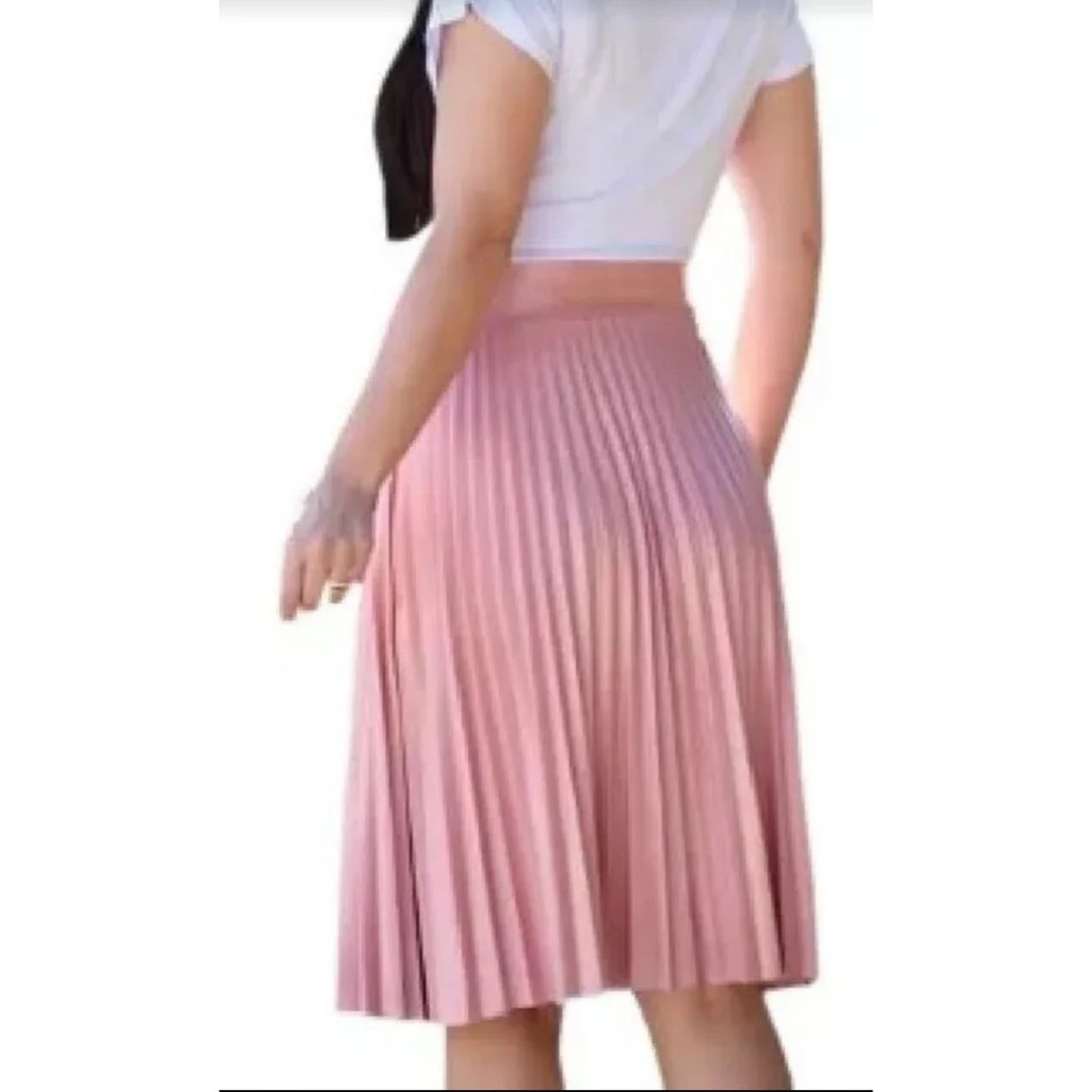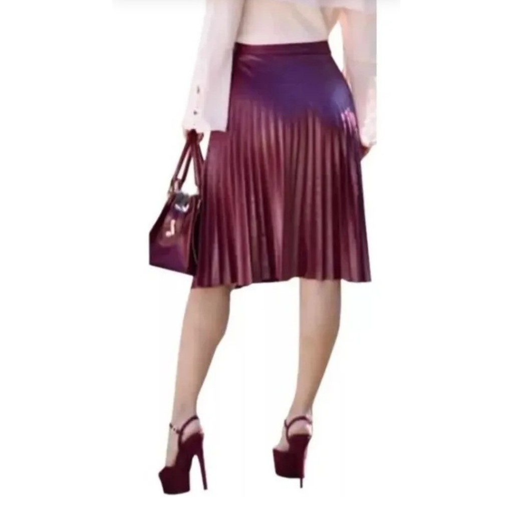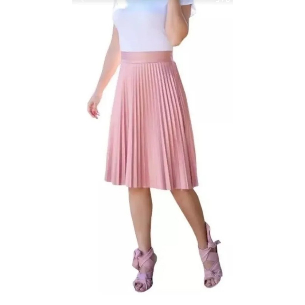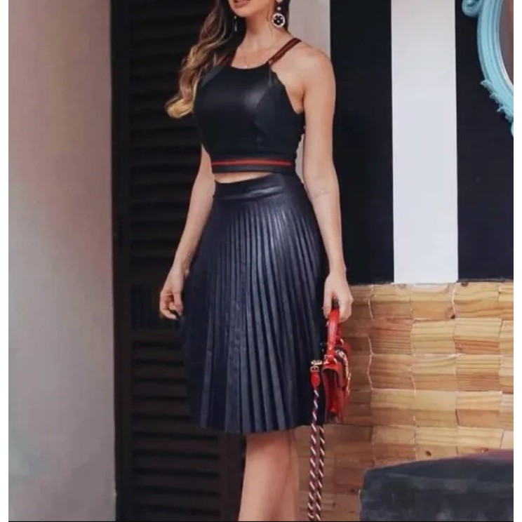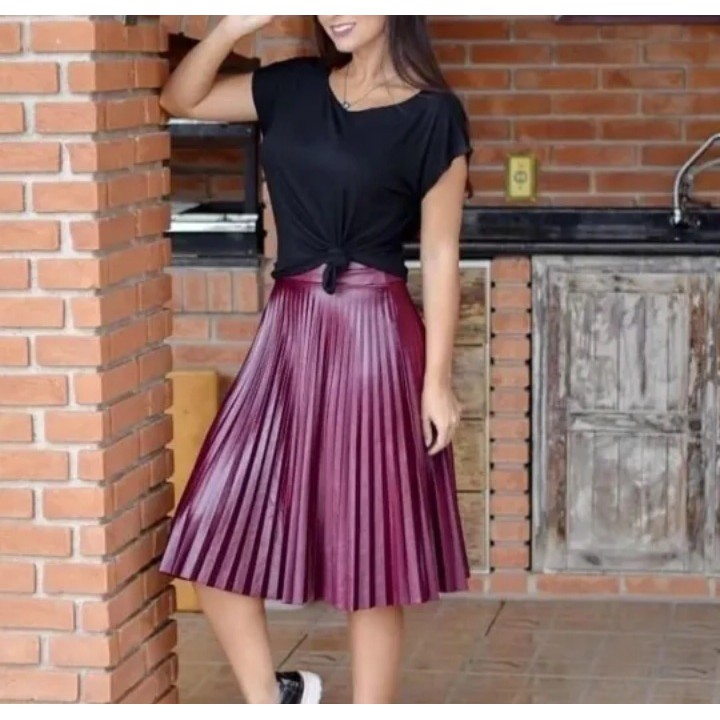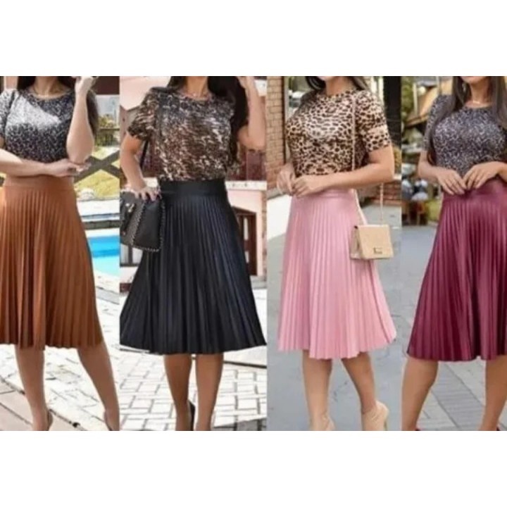 Saia Midi Plissada Cirrê Feminina Couro Fake Moda Evangélica Super Fashion
