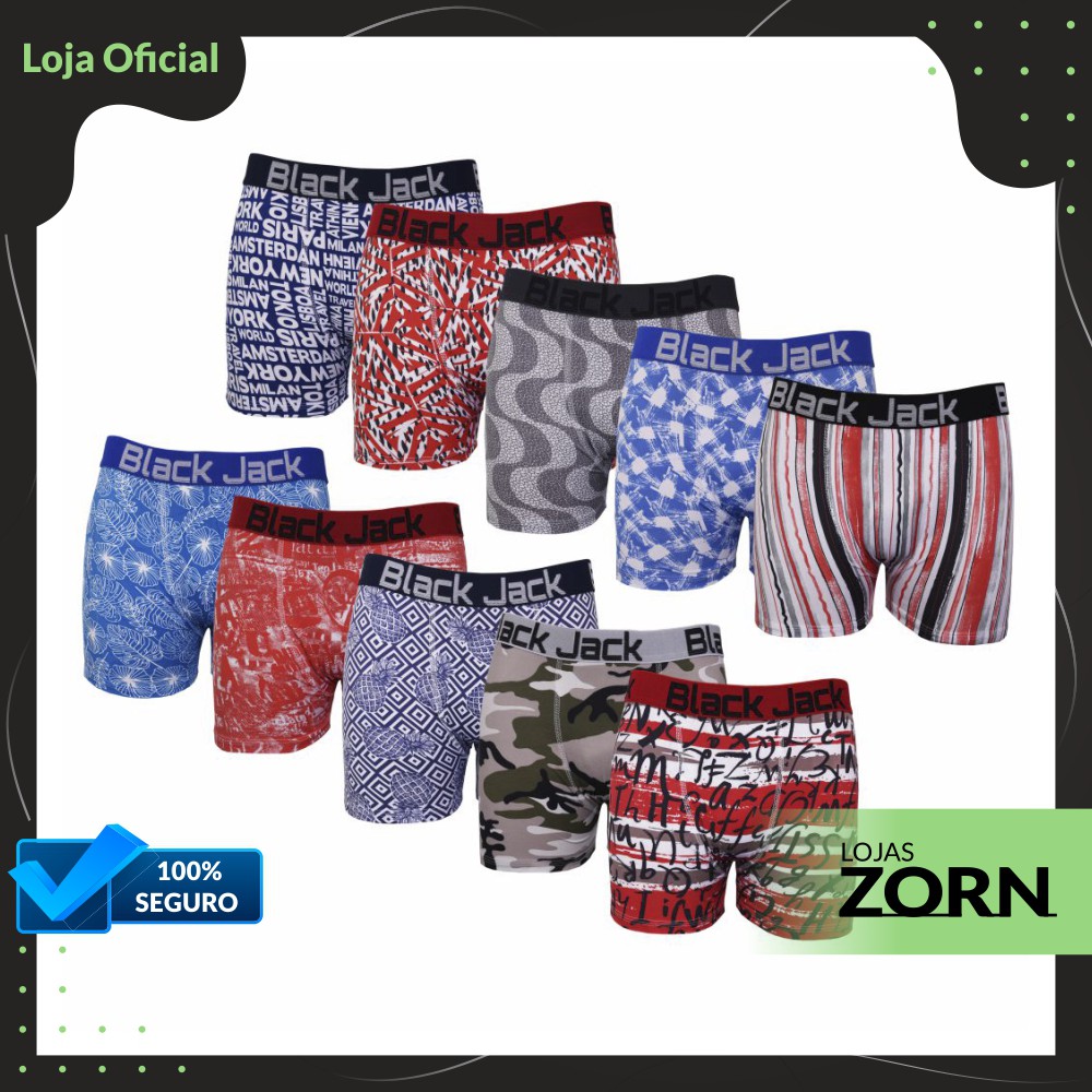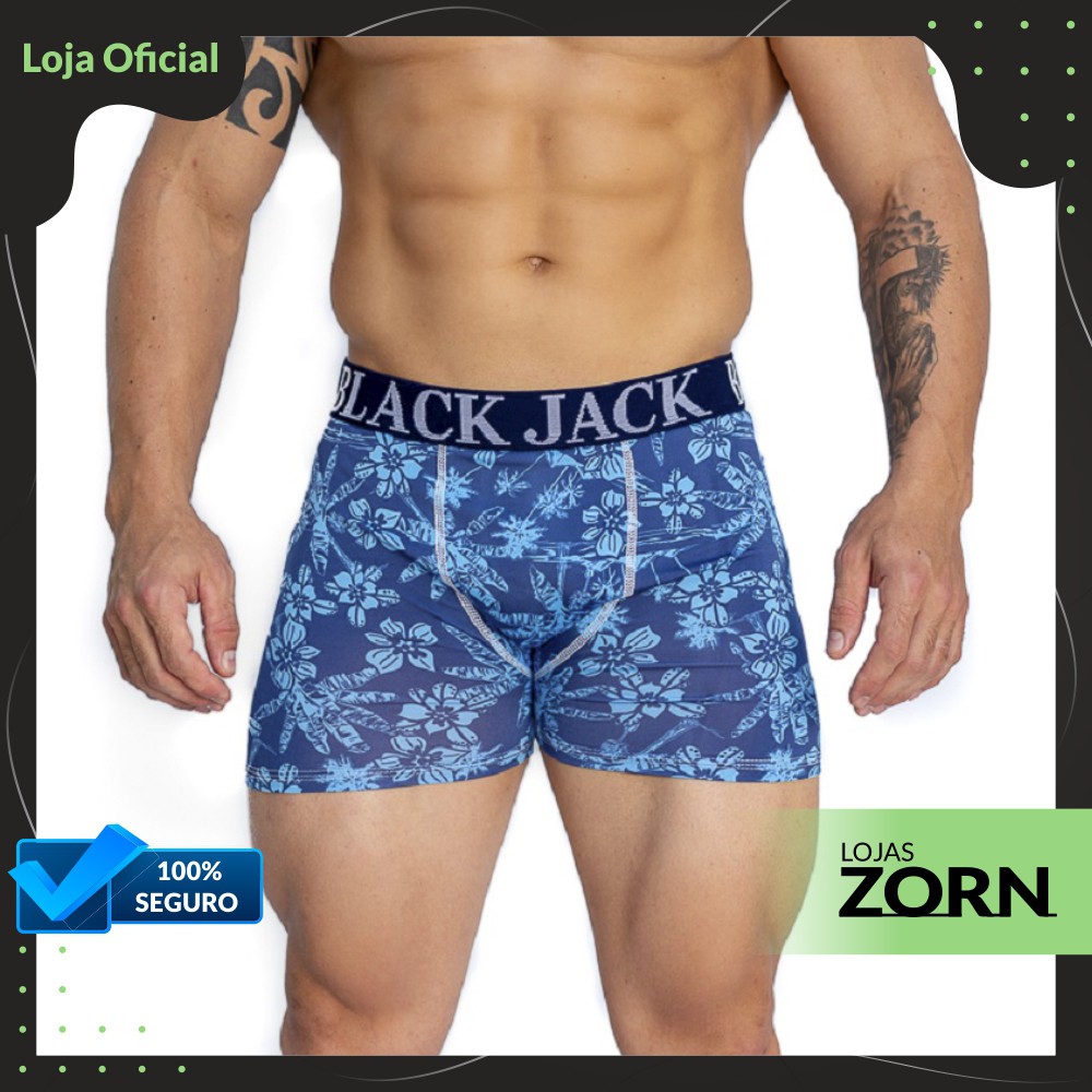 Kit com 05 Cuecas Box Boxer Black Jack Estampadas Microfibra Adulto