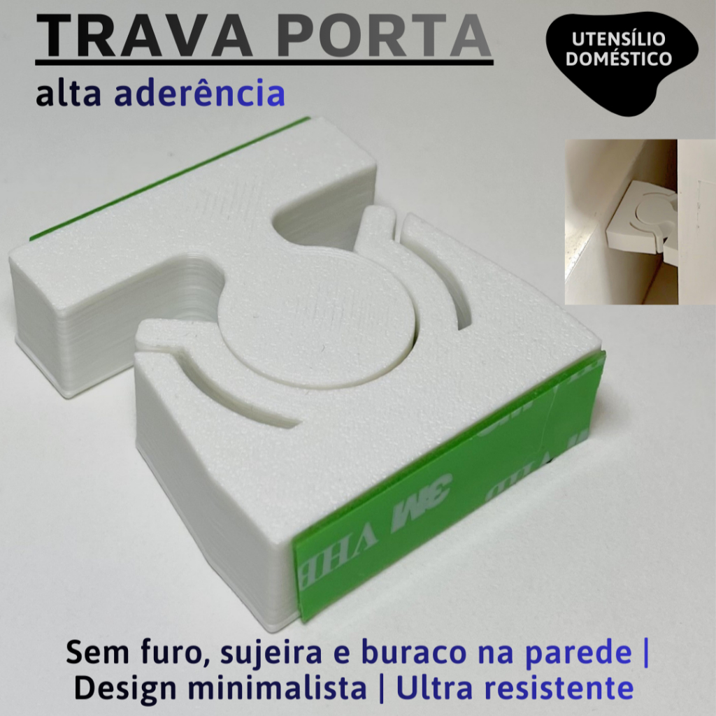 Prendedor Sem Furo Batedor Trava Fixador Porta Super Forte Adesivo Dupla Face Porta Vidro Madeira