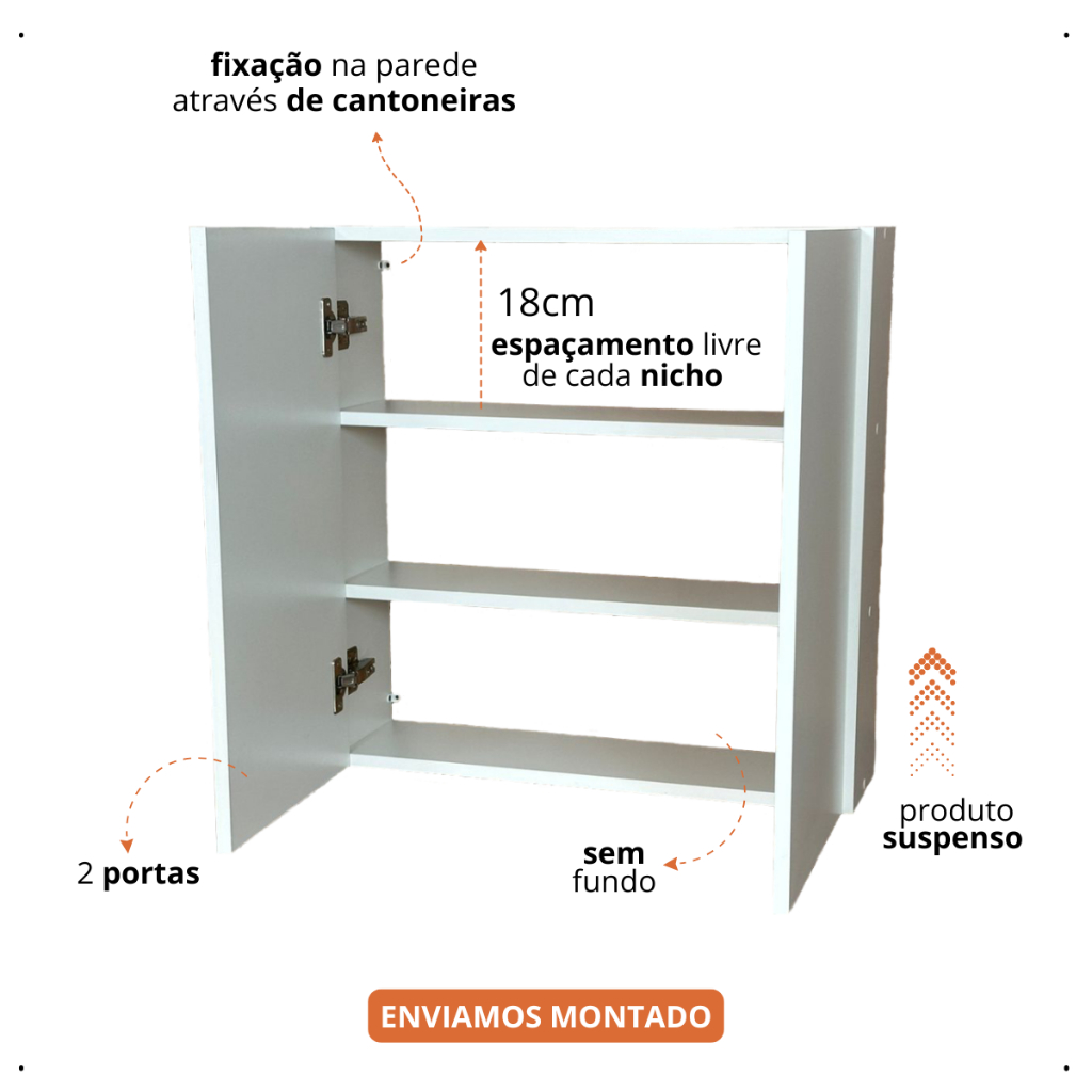 Armário Suspenso Para Banheiro Com 2 Portas 60x60x15cm