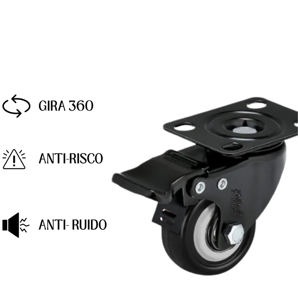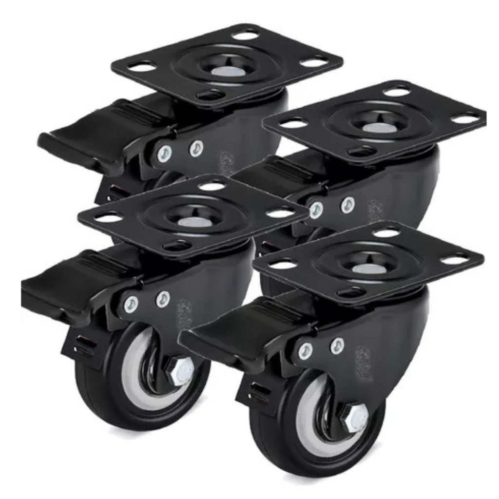 Kit 4 Rodizios Para Carrinhos Móveis Base Giratória Com Freio E Trava