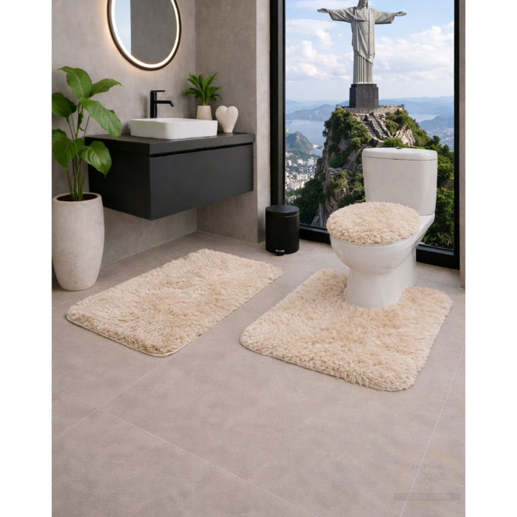Kit Tapete De Banheiro Felpudo Elegante poliester 3pçs