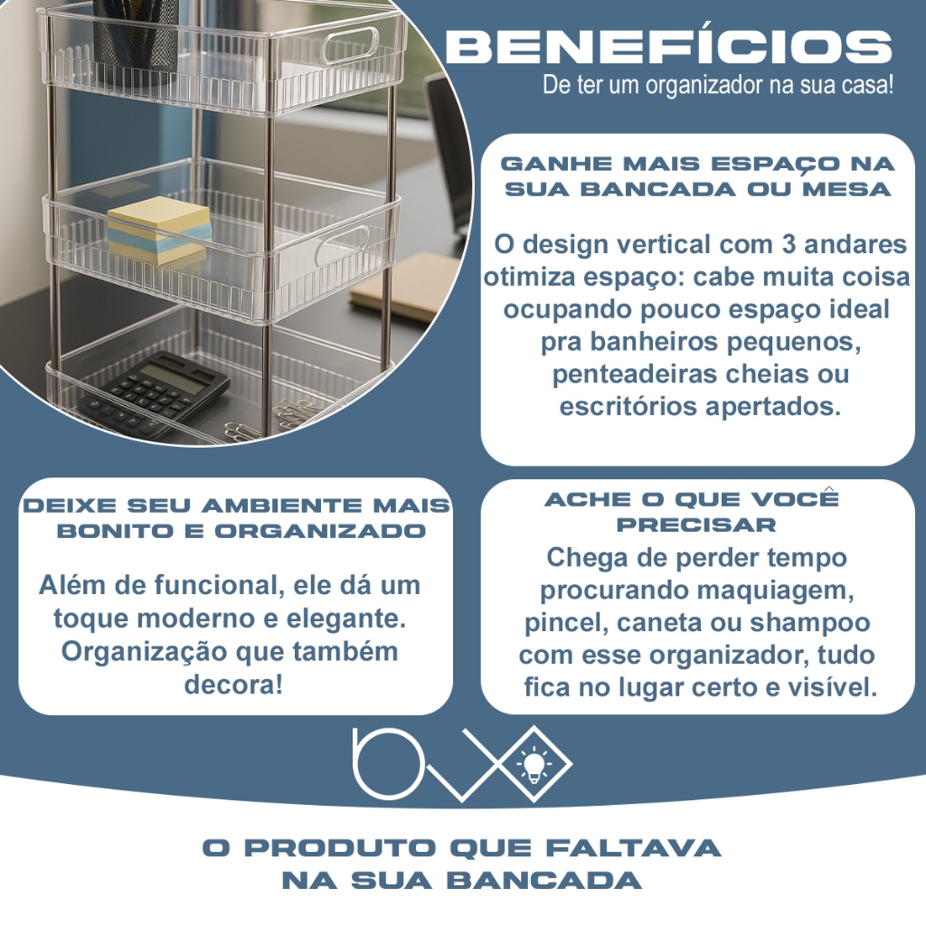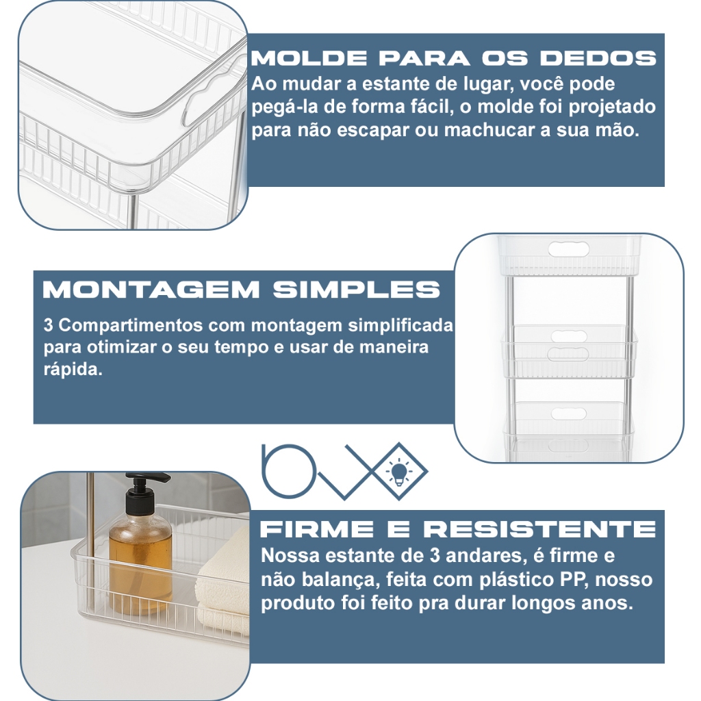 Estante Prateleira Organizadora de Acrílico Maquiagem Cosmeticos 3 Andares Quarto Banheiro Cozinha