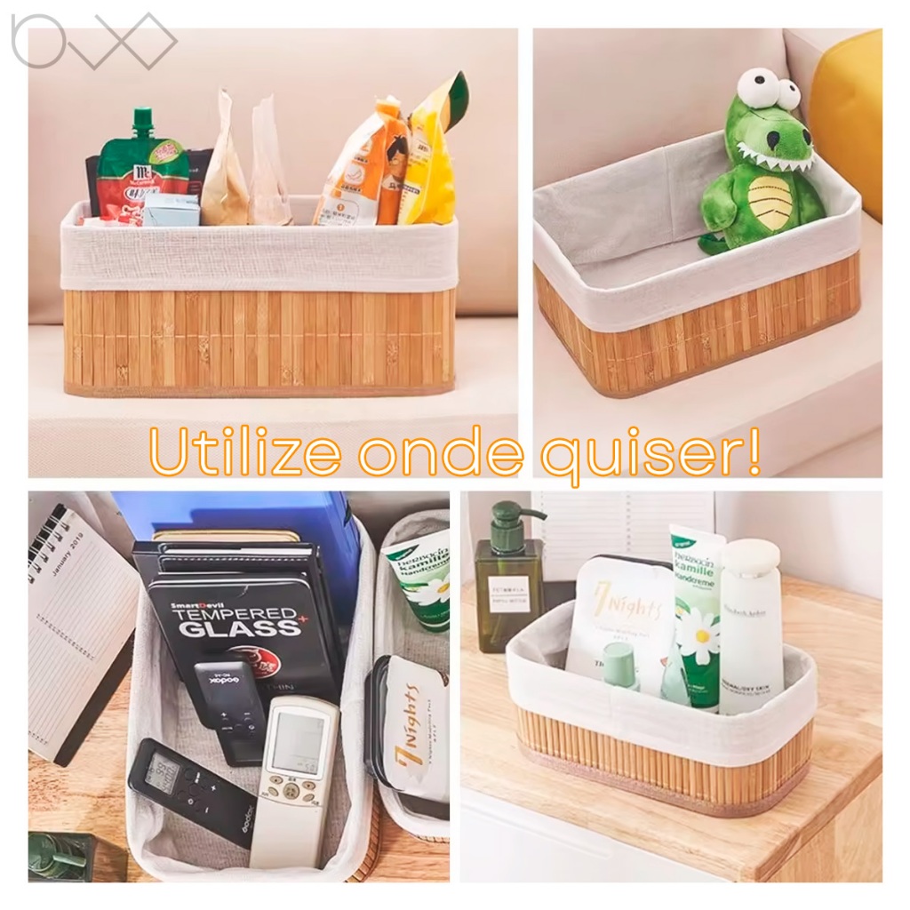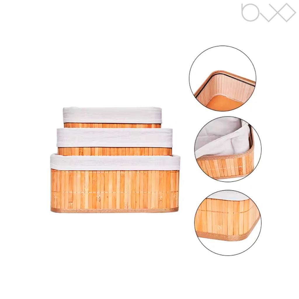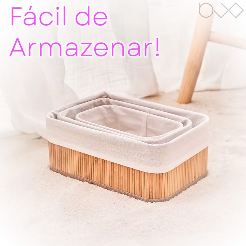 Kit 3 Cestos Bambu Multiuso com Forro Decorativo Organizador Sala Cozinha Lavanderia Banheiro Quarto