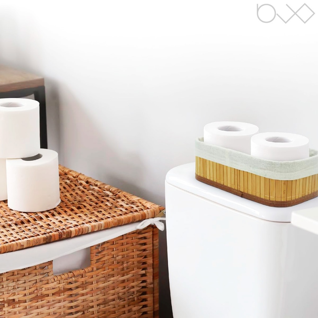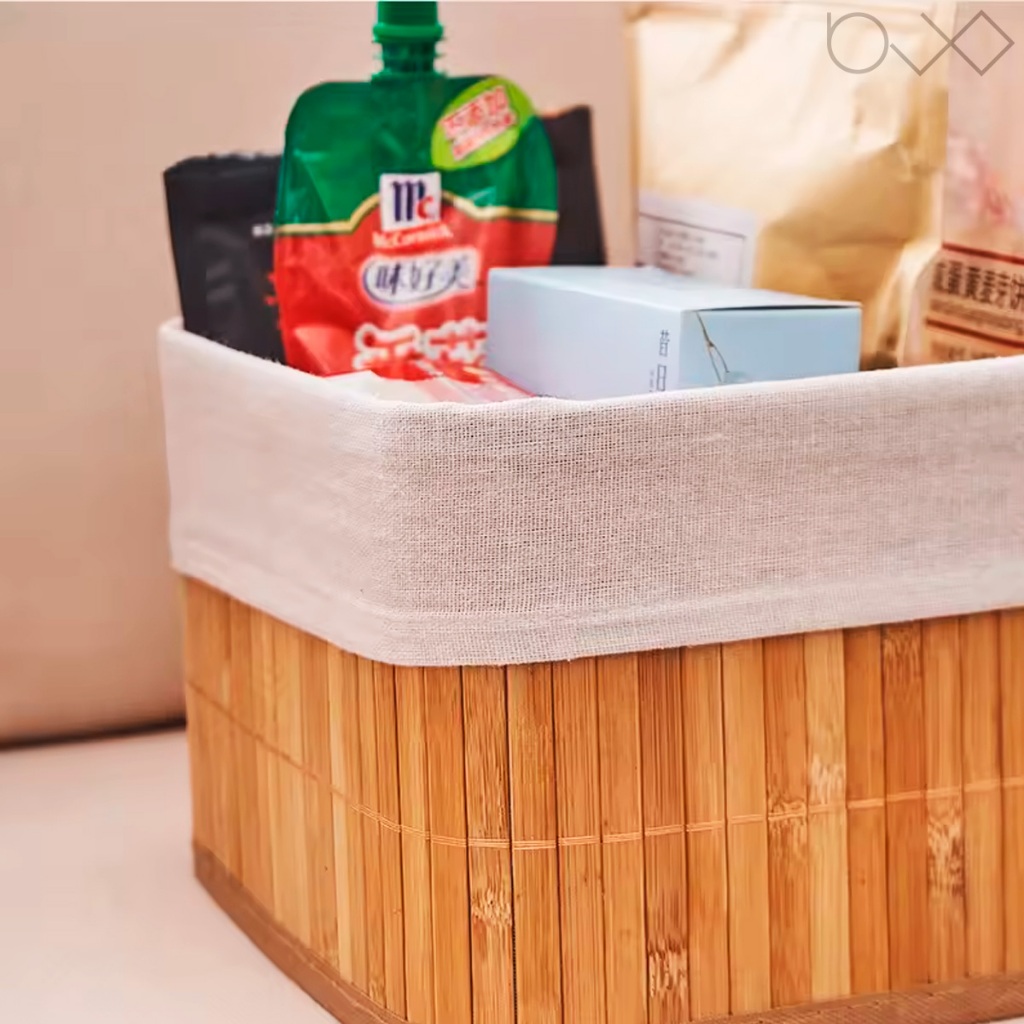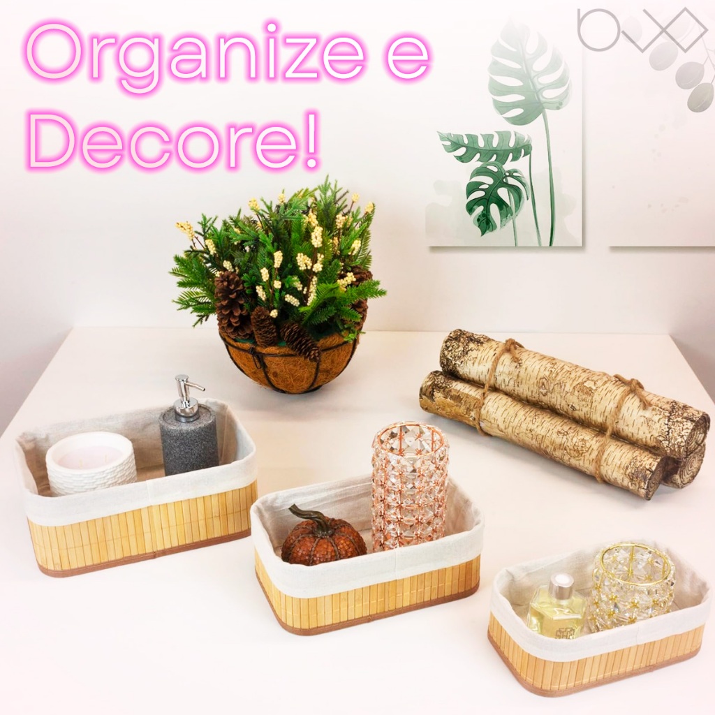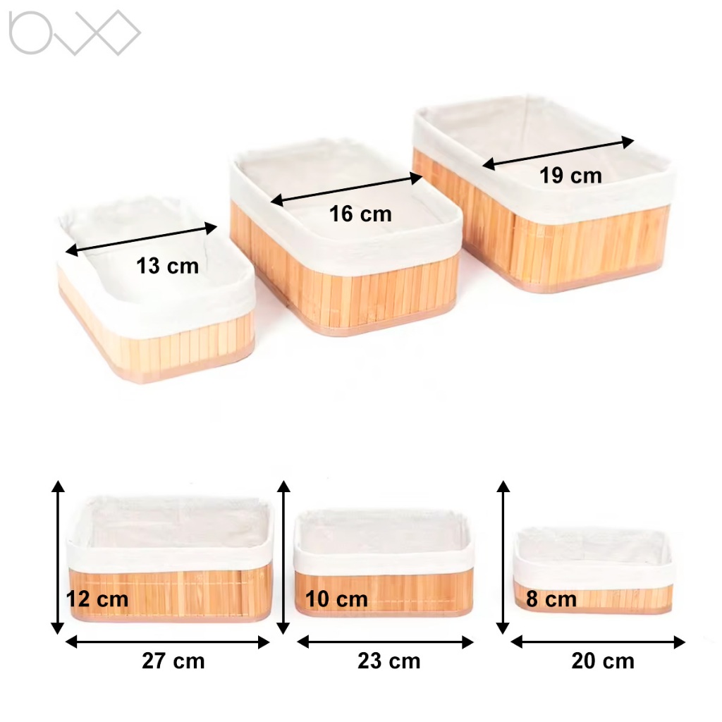 Kit 3 Cestos Bambu Multiuso com Forro Decorativo Organizador Sala Cozinha Lavanderia Banheiro Quarto