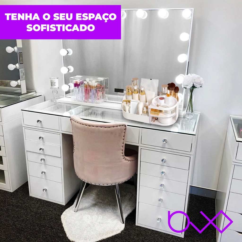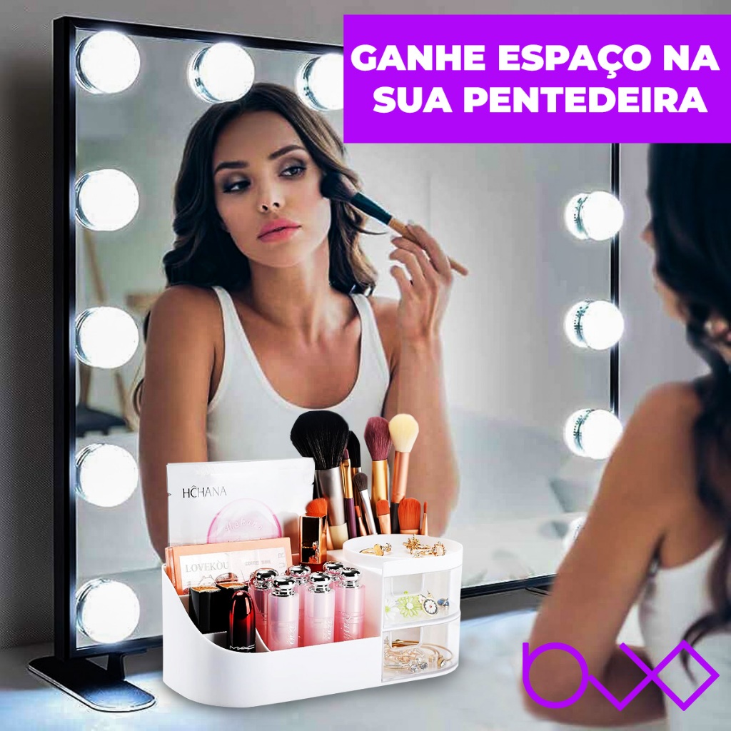 Organizador Multiuso Maquiagem Pincéis Cosmético Escritório 2 Gavetas 7 Compartimentos Branco