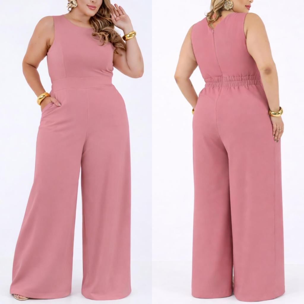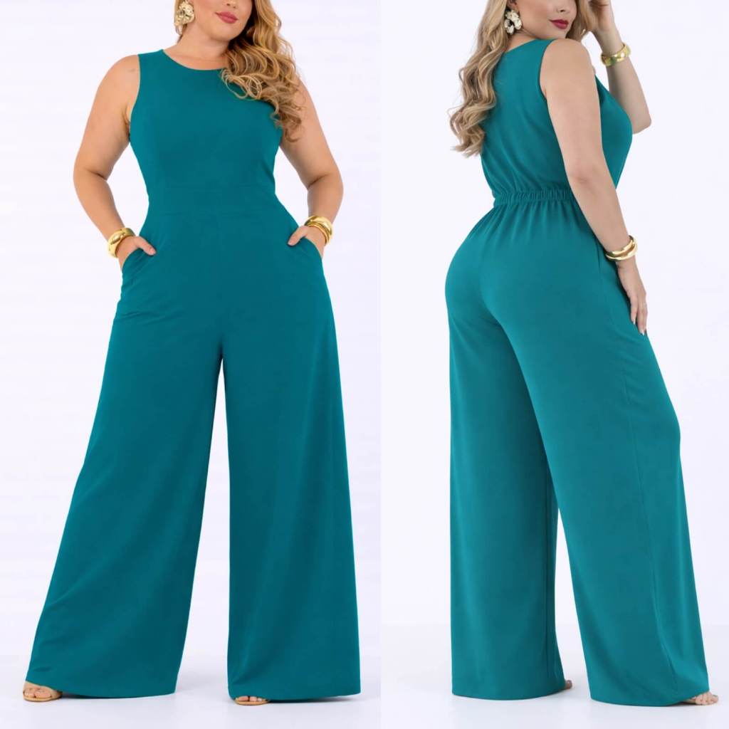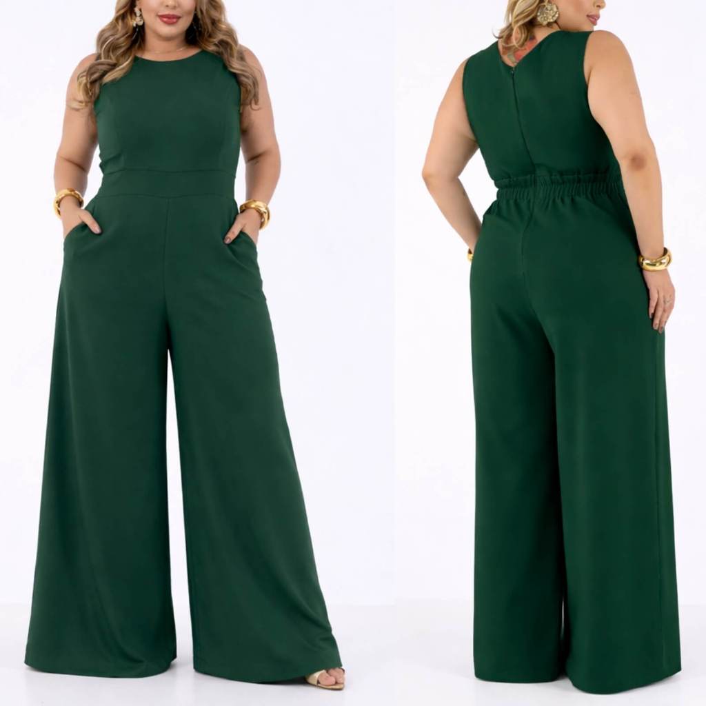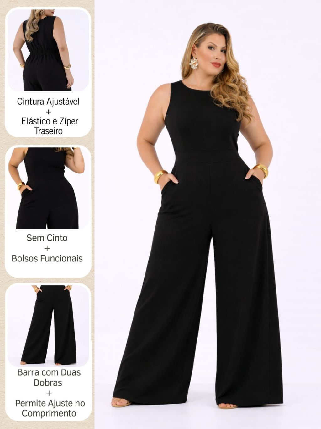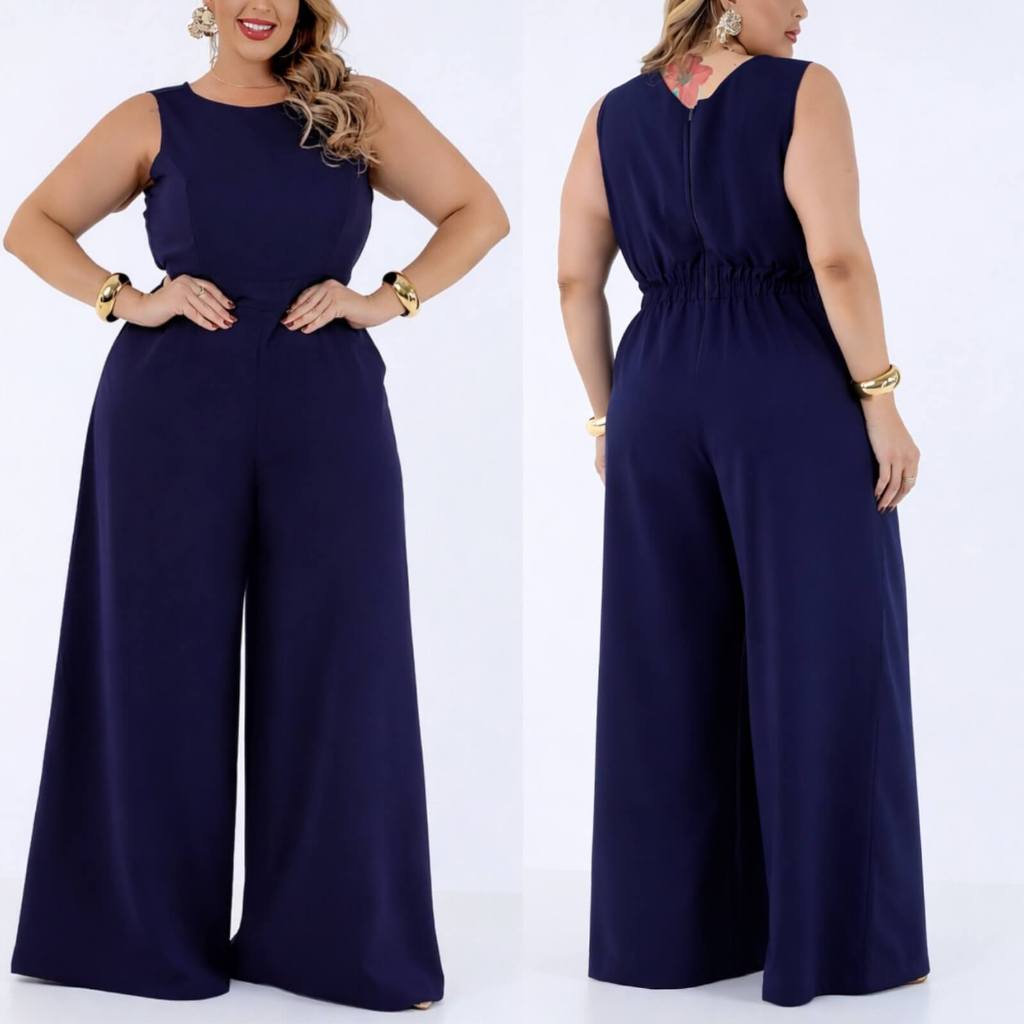 Macacão Feminino Longo Plus Size Feminino Pantalona Elegante Ajustável Elástico Confortável Sofisticado Zíper P ao 54