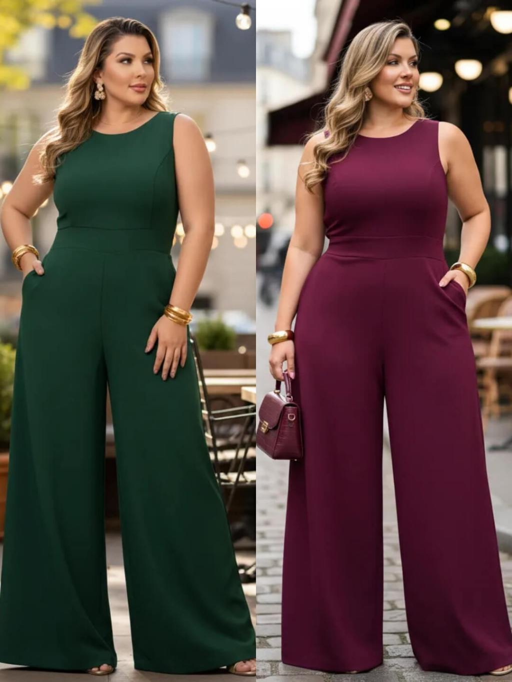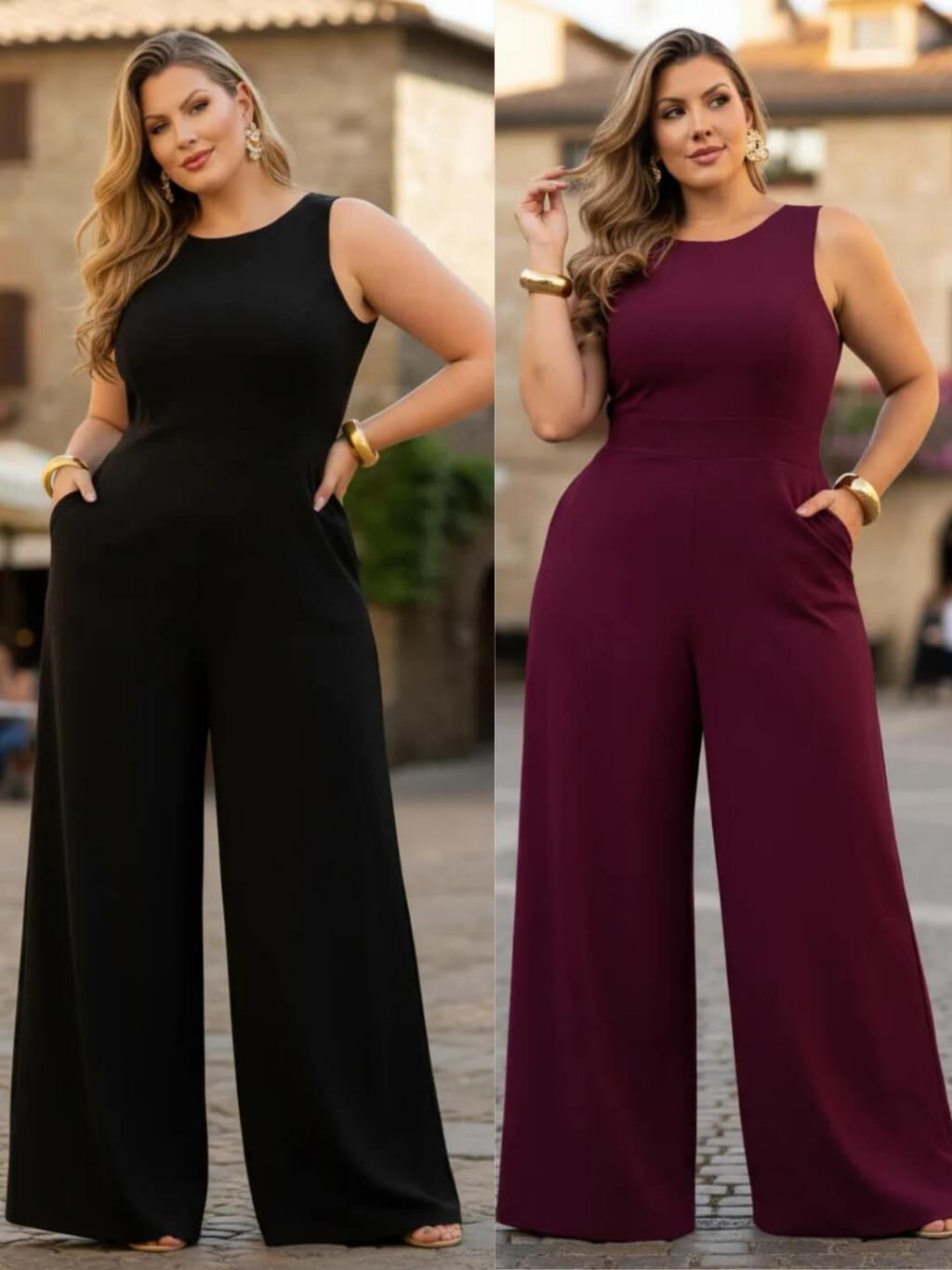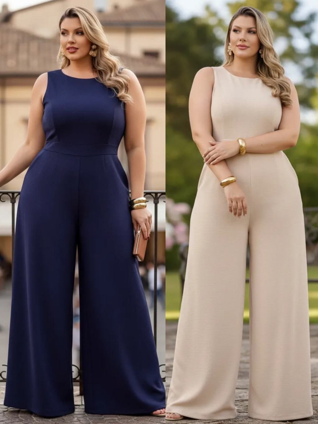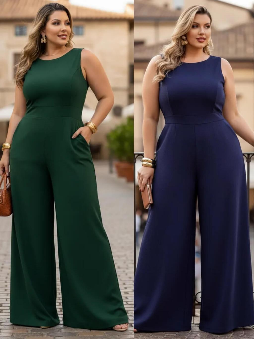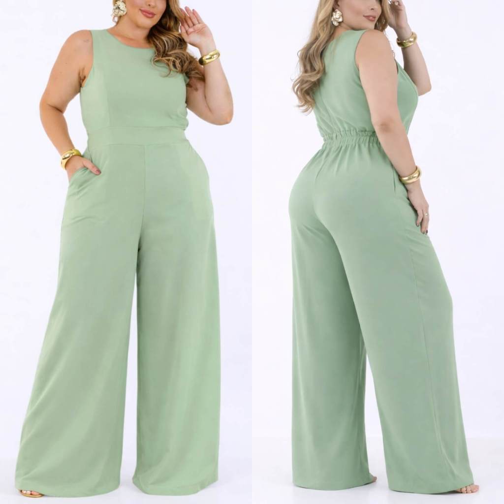 Macacão Feminino Longo Plus Size Feminino Pantalona Elegante Ajustável Elástico Confortável Sofisticado Zíper P ao 54