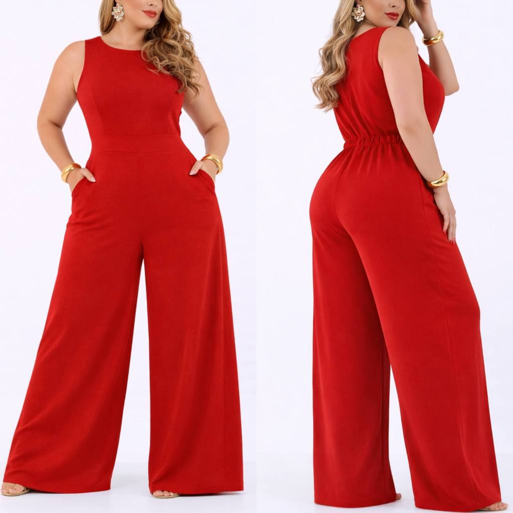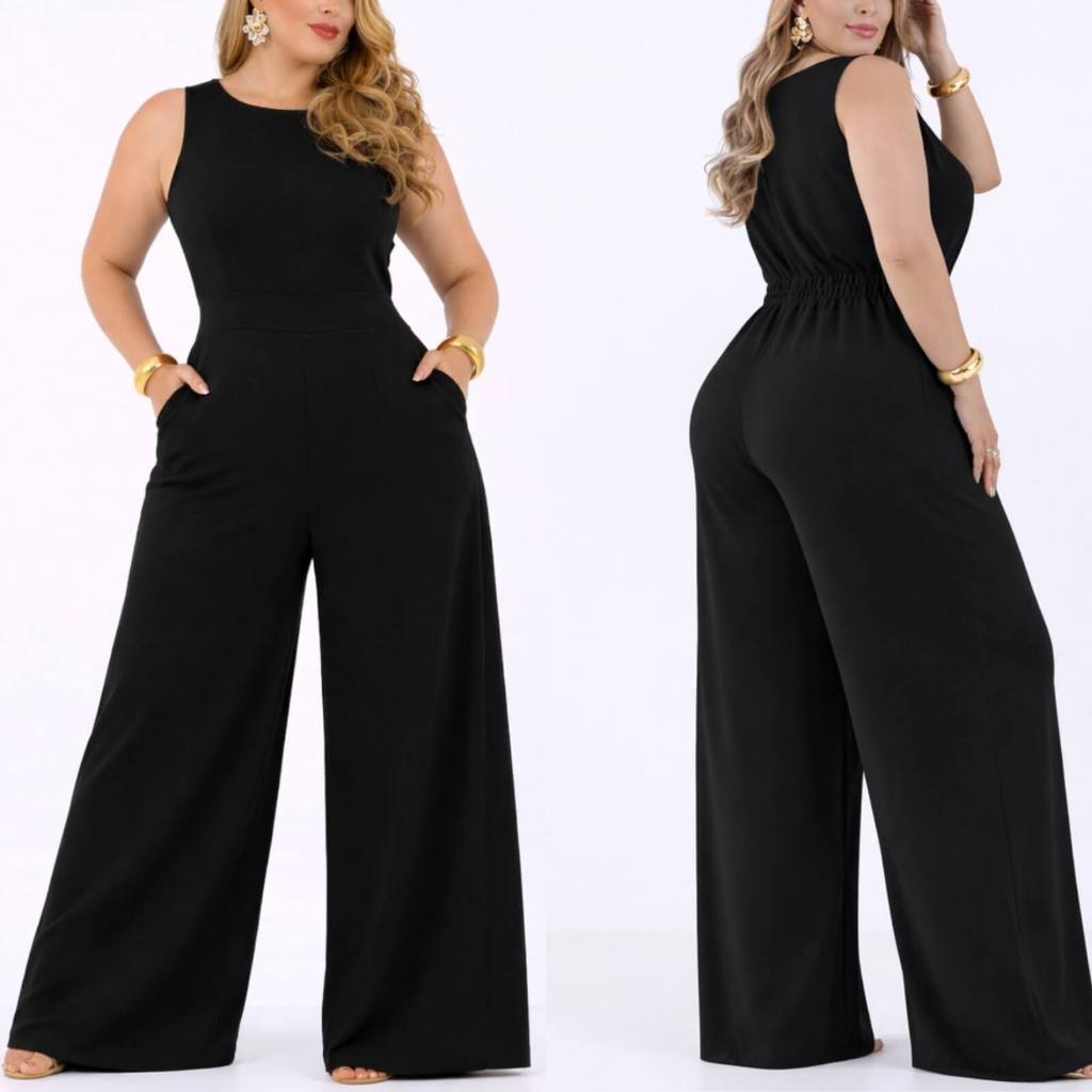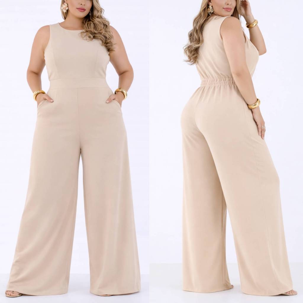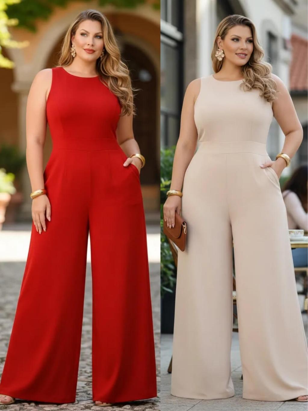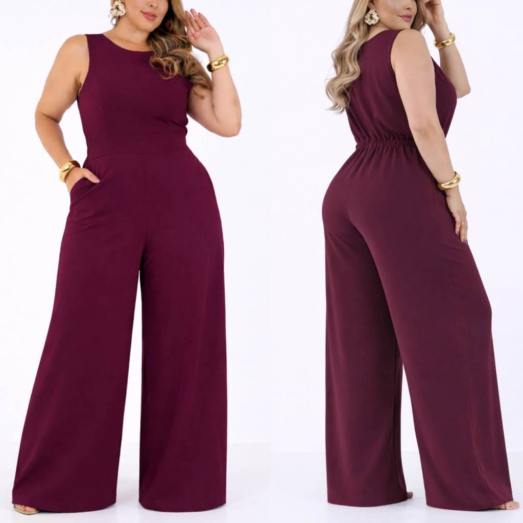 Macacão Feminino Longo Plus Size Feminino Pantalona Elegante Ajustável Elástico Confortável Sofisticado Zíper P ao 54