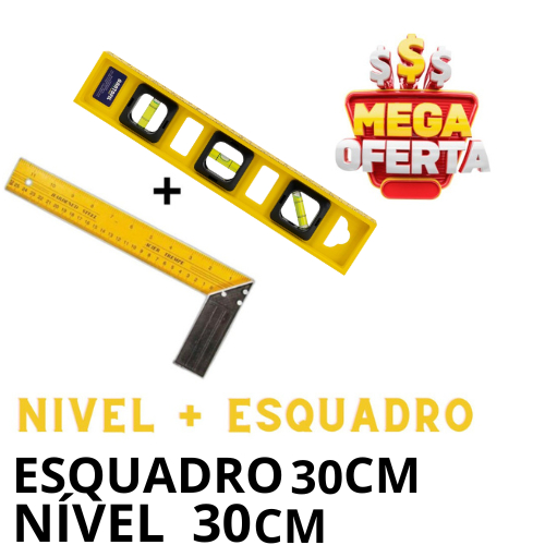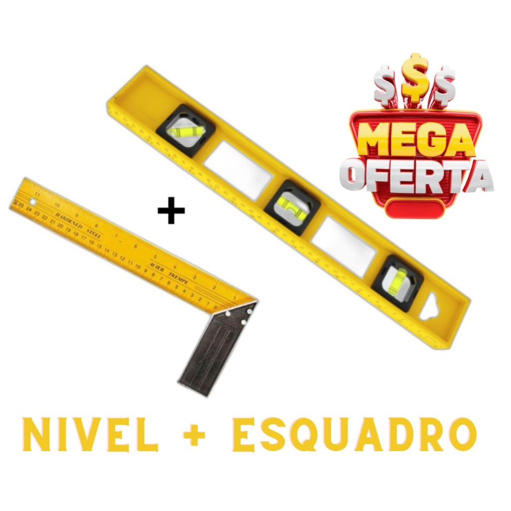 Esquadro Régua Carpinteiro Pedreiro Metálico Aço Kit Profissional e Nível Polímetro Pedreiro