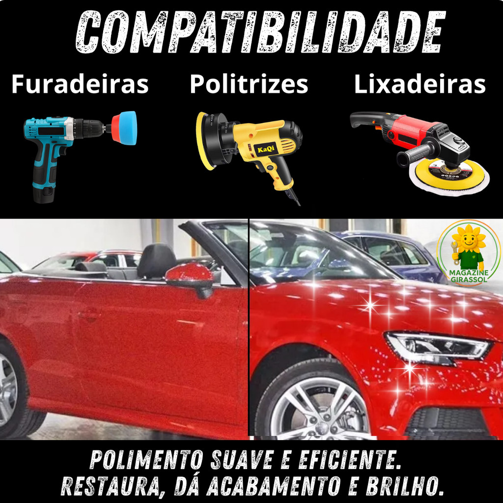 Kit 6 Peças 7 Pol. 180mm Disco Espuma Boina Lã Prato Pino M14 Polimento Automotivo KP22