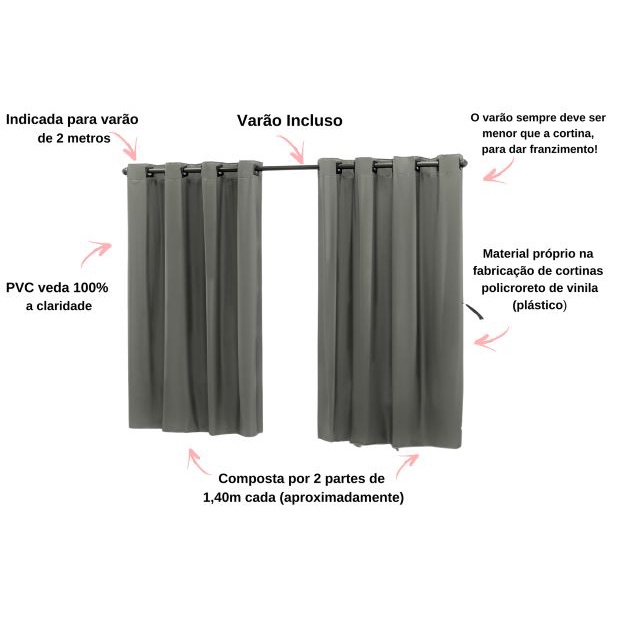 Cortina Blackout PVC Kit 2,80x1,80m Com Varão de 2m Incluso