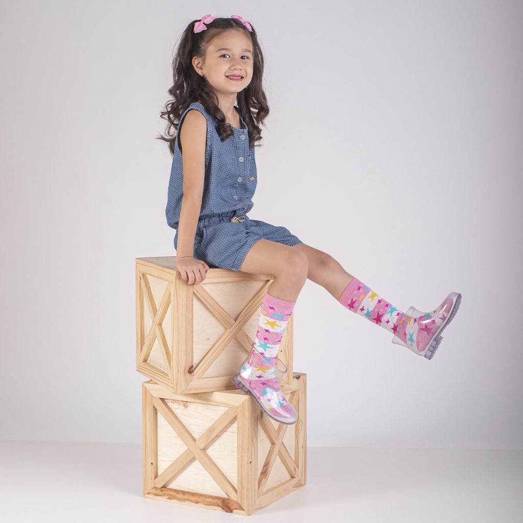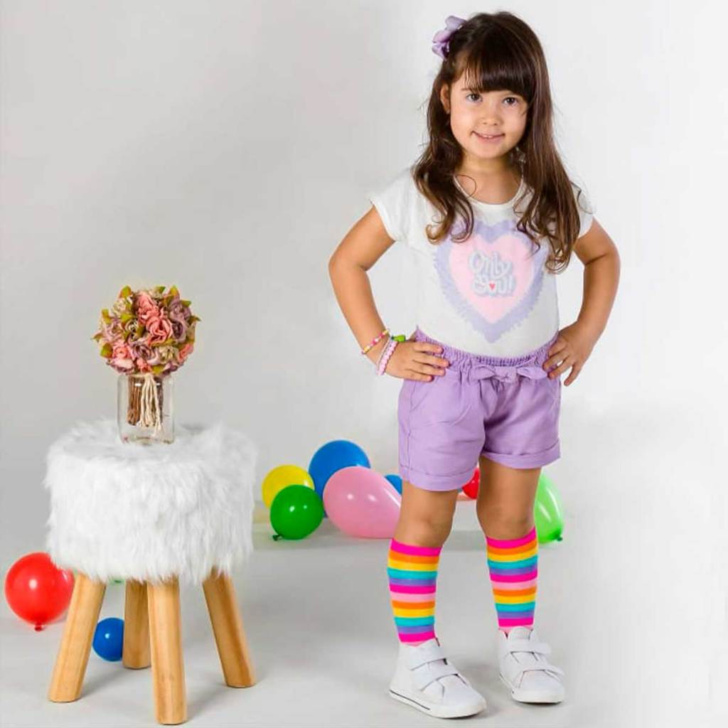 Meia Infantil 3/4 Galochita Feminina Menina Colorida Meia Joelho Inverno Cano Alto Patins Carnaval