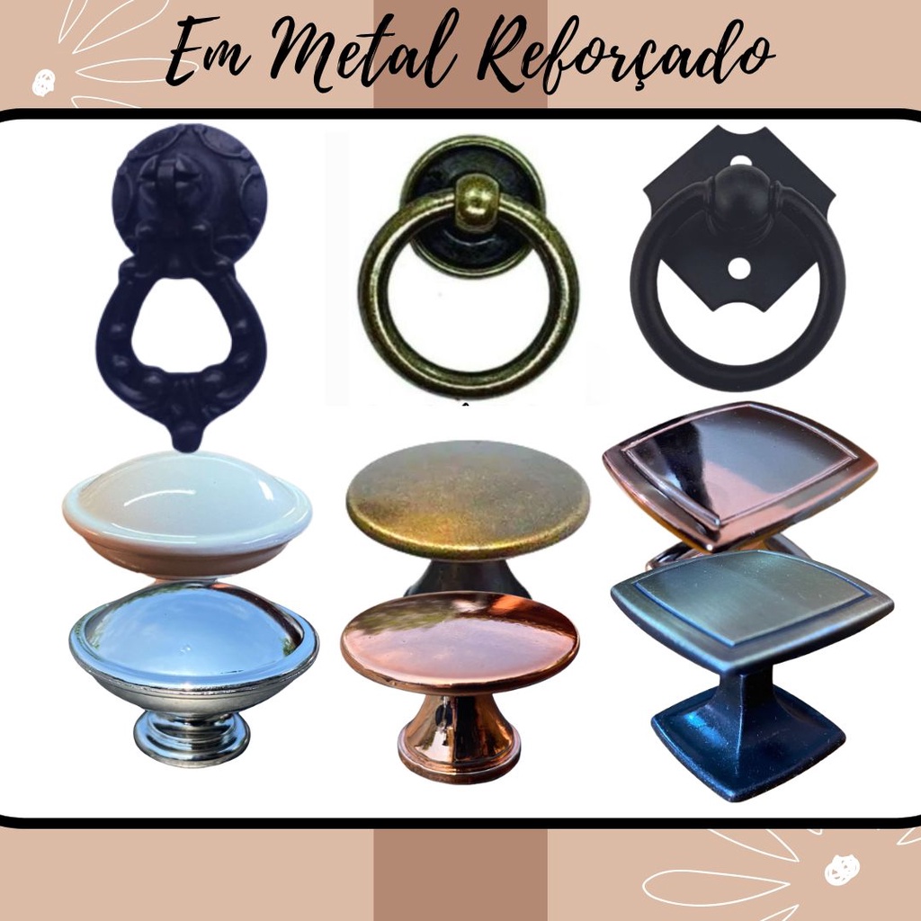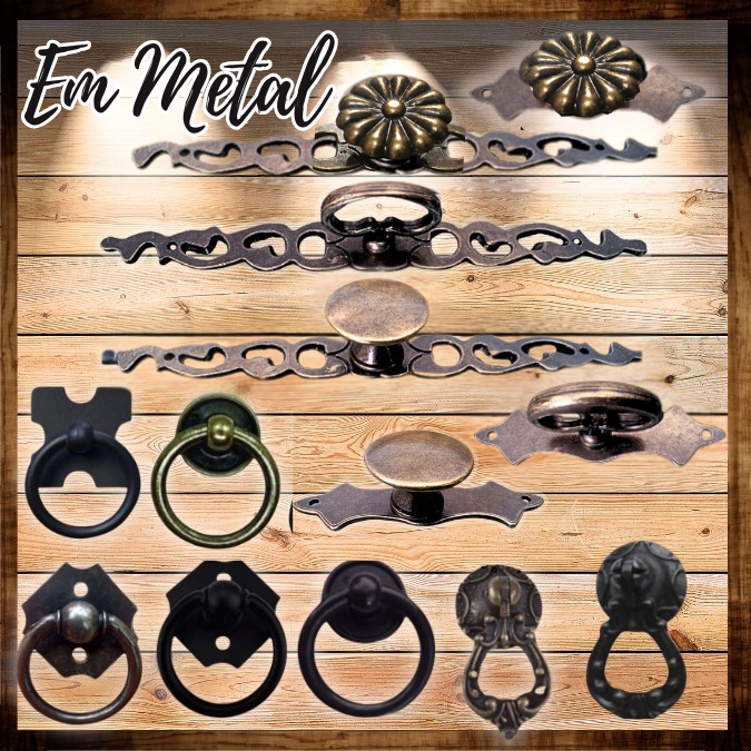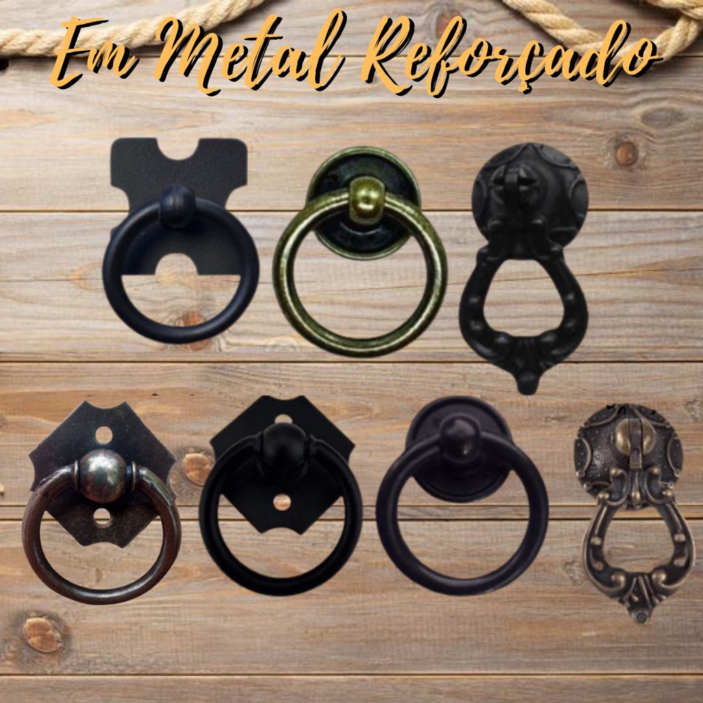 kit 4 / 5 / 6 / 7 / 8 puxador alça rustico colonial gaveta porta guarda roupa em metal