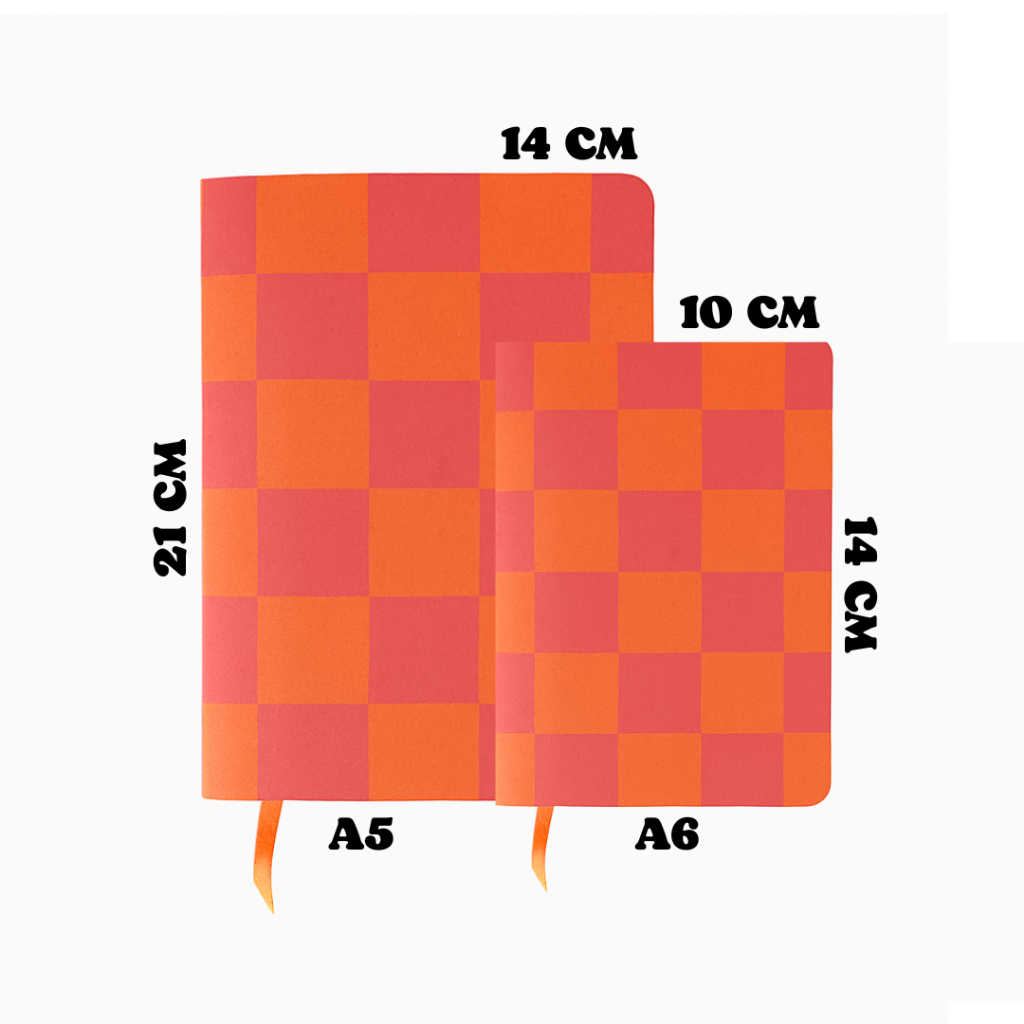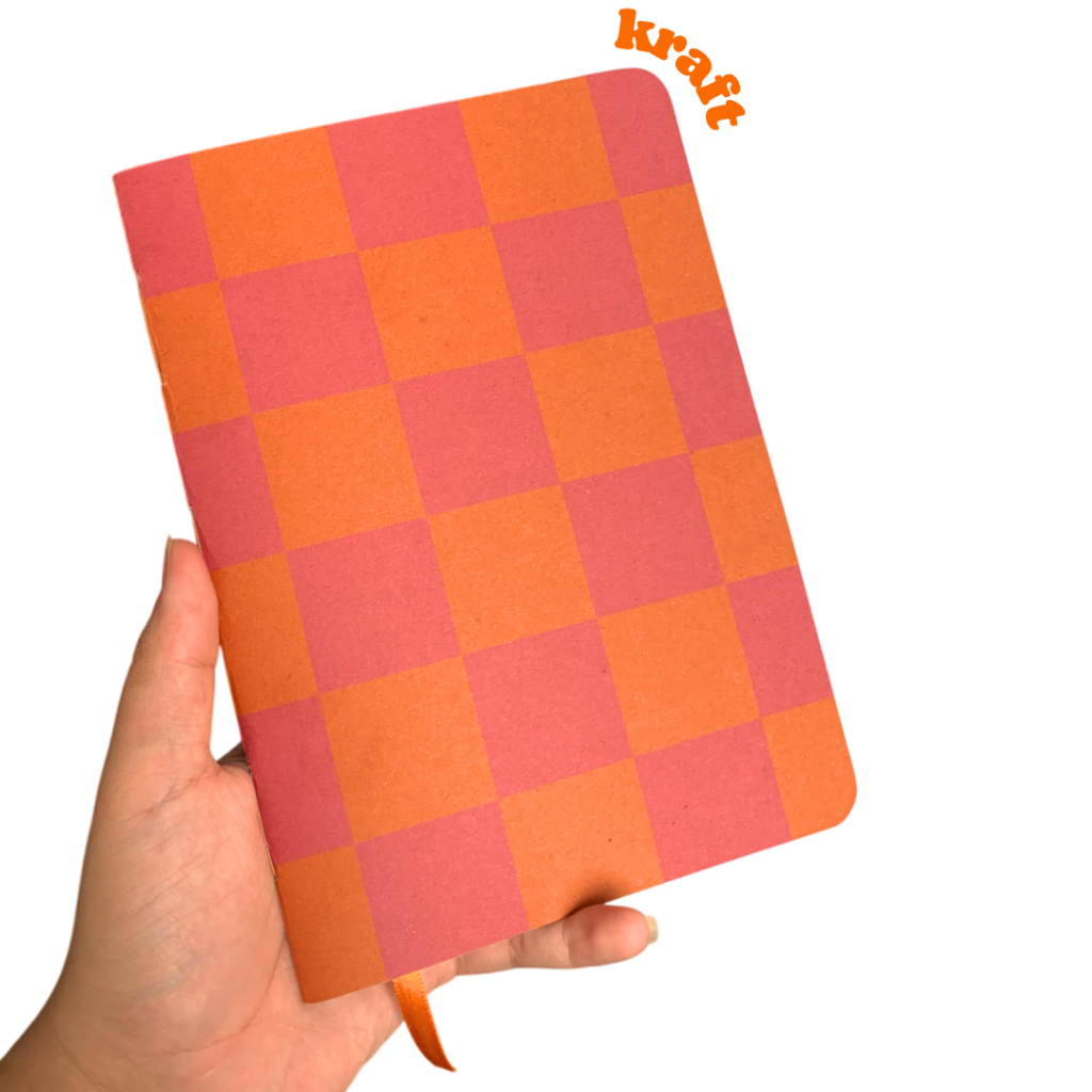 Caderno personalizado laranja e rosa aesthetic quadriculado xadrez caderneta moleskine sketchbook