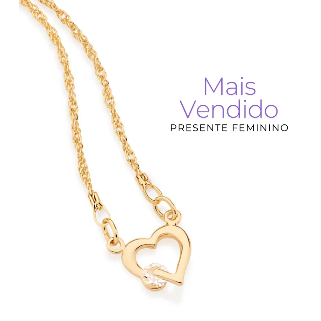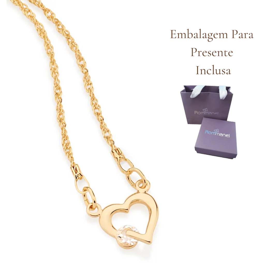 Colar Feminino Lindo Coração Com Zircônia Banhado A Ouro 18k Acompanha Embalagem Para Presente