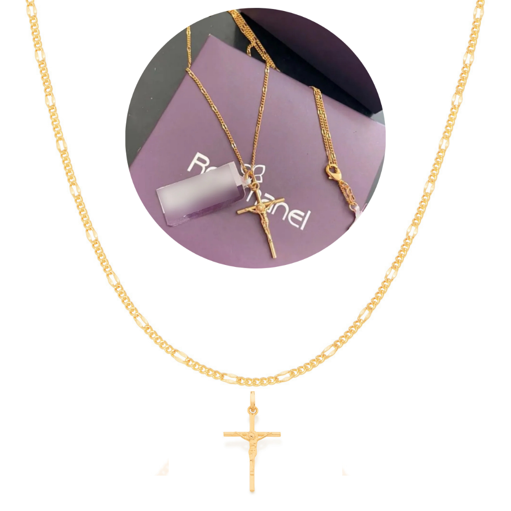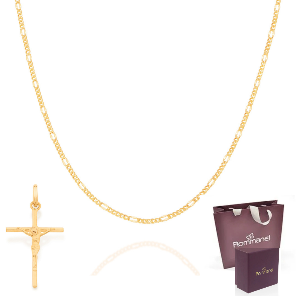 Cordão Rommanel Com Pingente Cruz De Cristo Banhados Ouro 18k 60cm 530072/540027