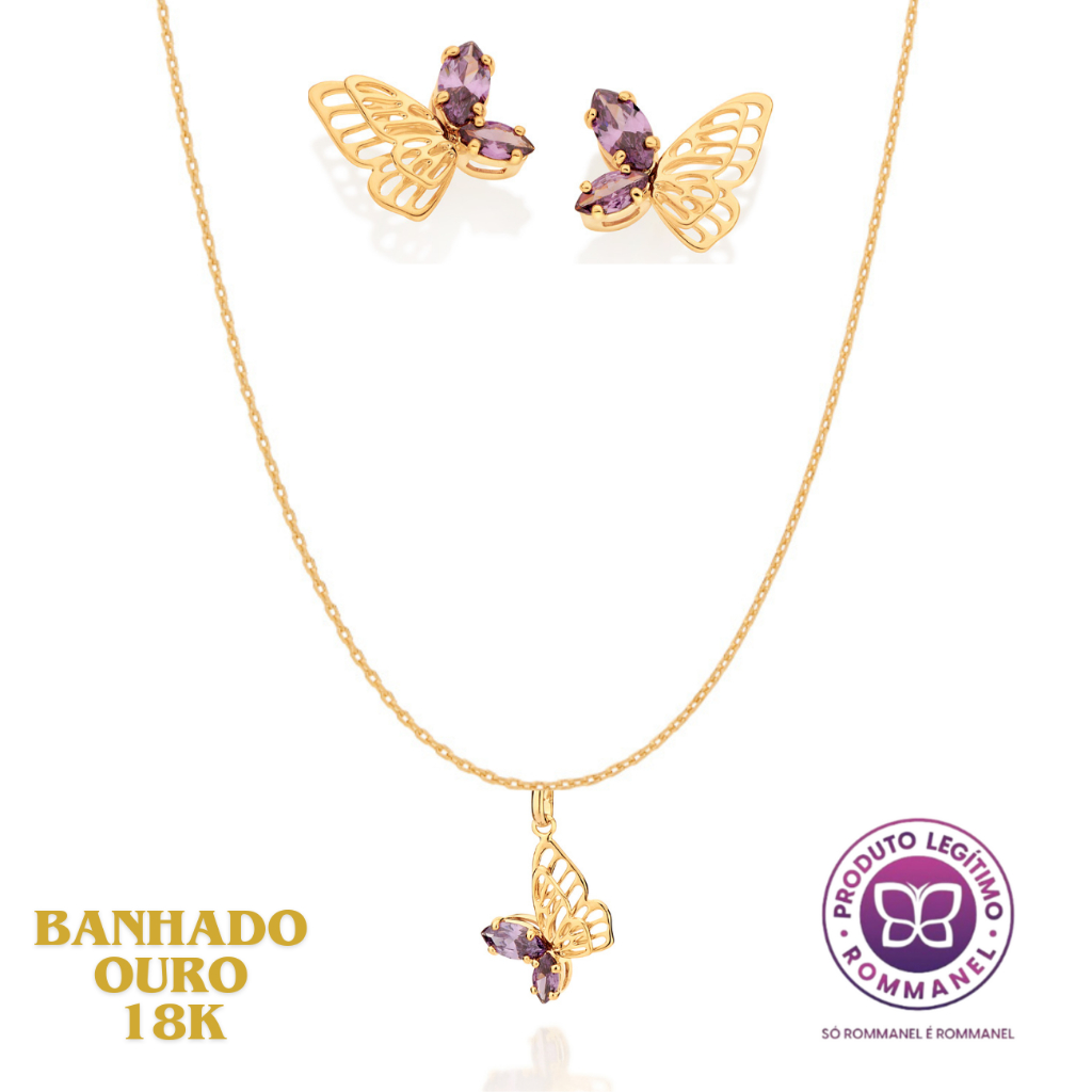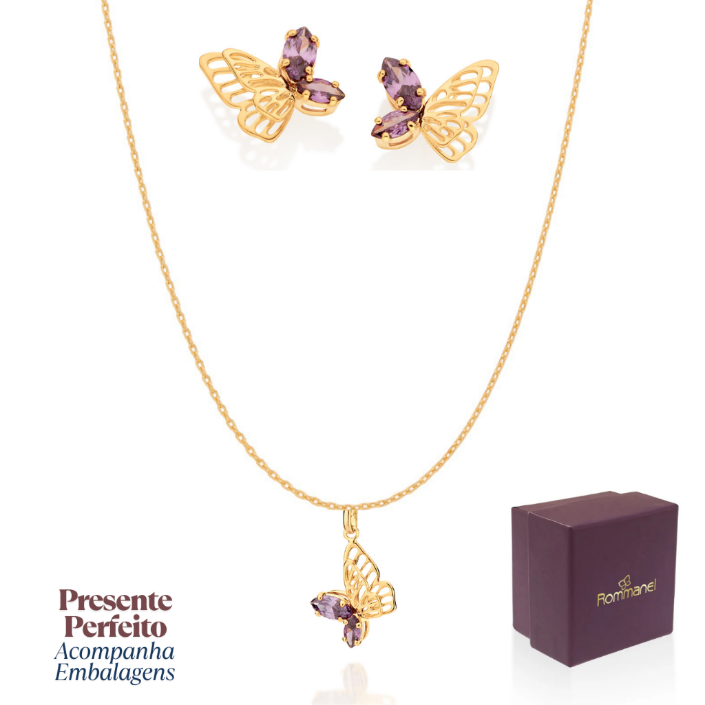 Presente Feminino Kit Colar Pingente E Brincos Banhados A Ouro 18k Rommanel