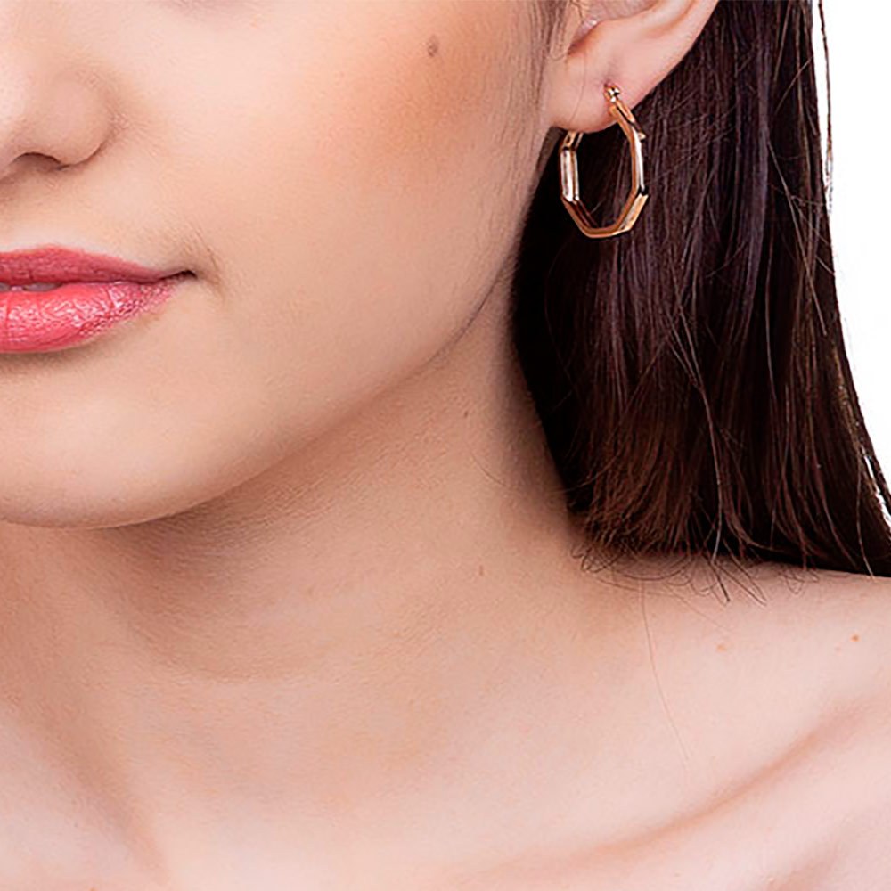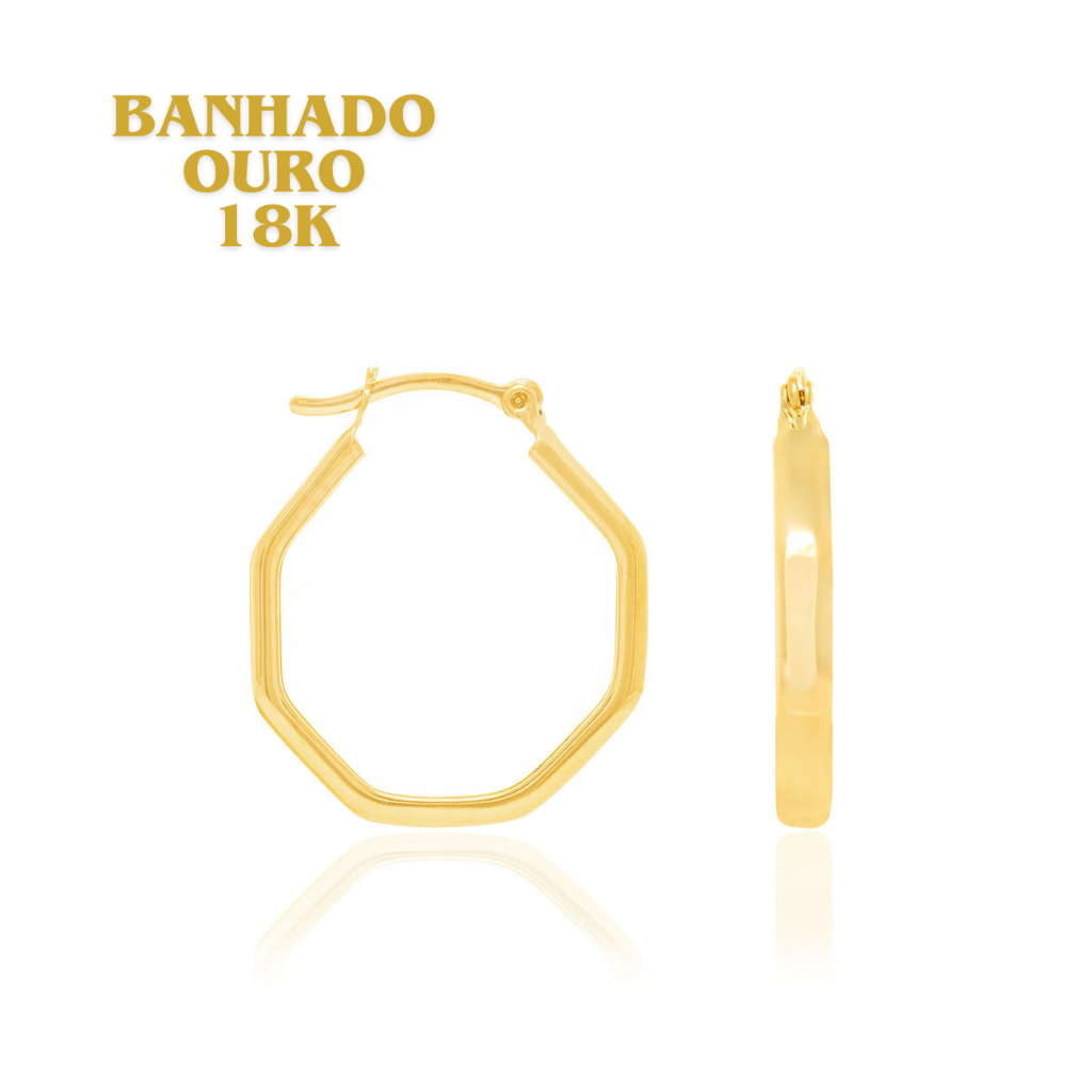 Brinco Argola Octagomal Rommanel Feminina Dourada Banhado Ouro 18k 520903