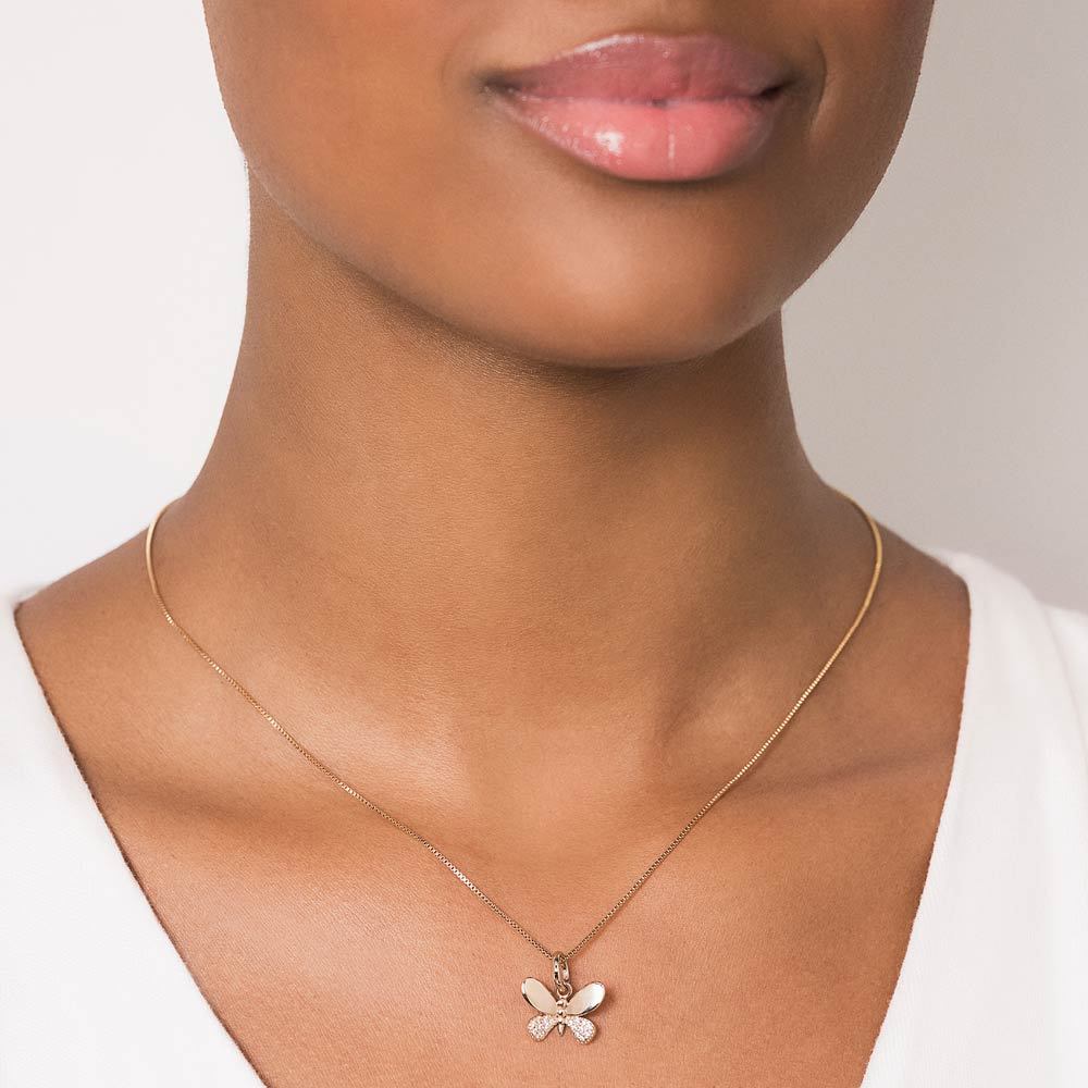 Colar Rommanel Borboleta Cravejada 18 Zircônias Ouro 18k Original + Garantia