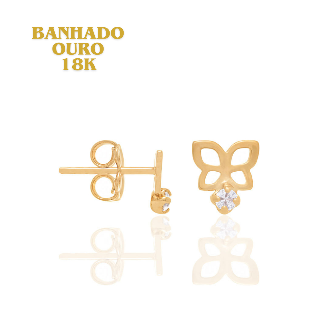 Brinco Infantil Borboleta Vazada Com Zircônia Rommanel 526050