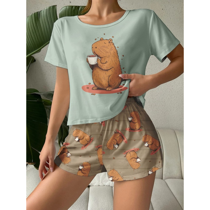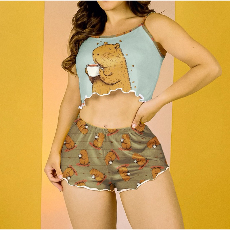 Pijama adulto Capivara roupa de dormir Baby Doll