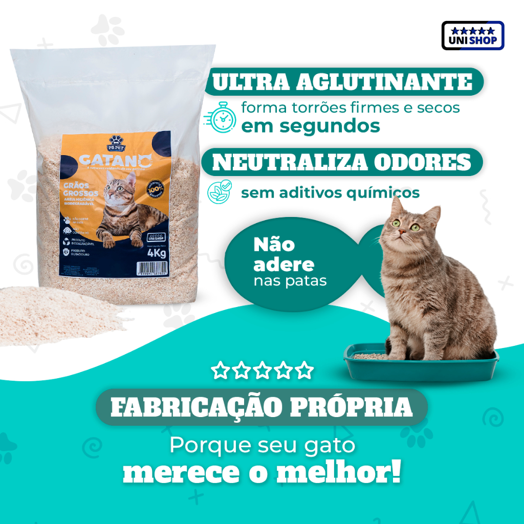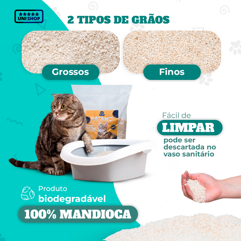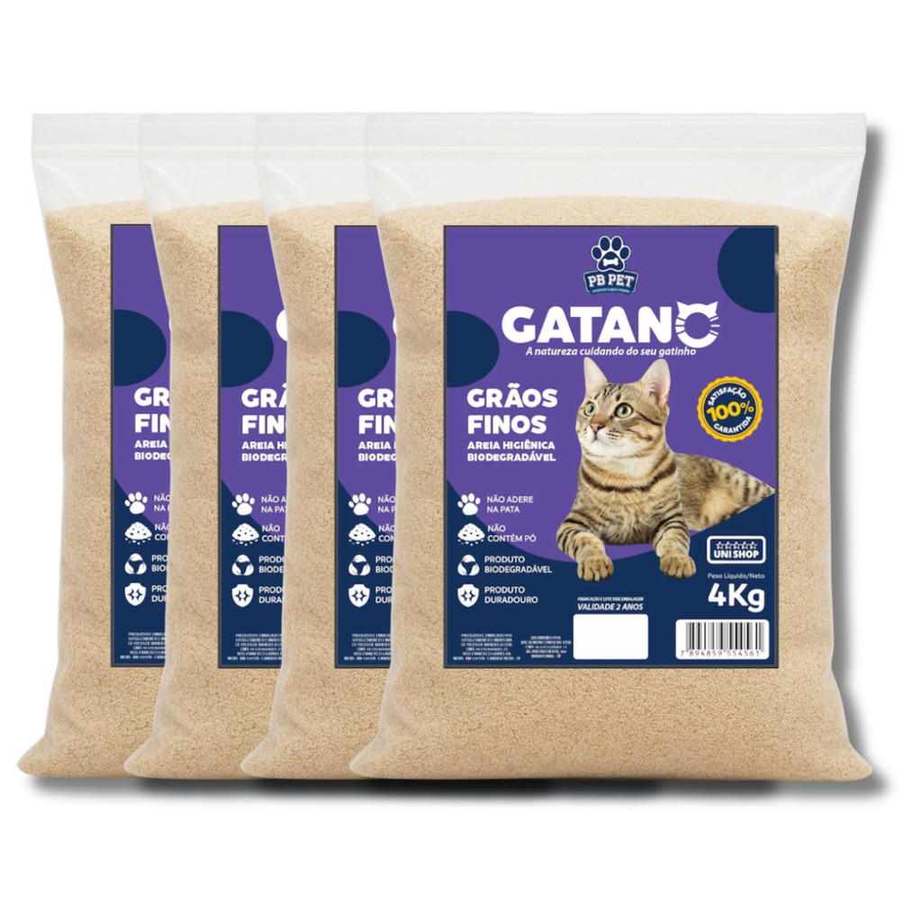 Kit 4 Areia De Gato Biodegradável 100% Mandioca Ultra Aglutinante 16kg