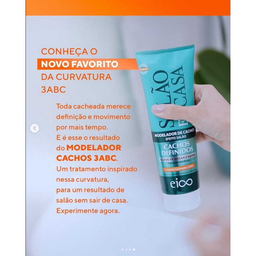Eico Leave-in Creme Modelador Cacheados Proteção Térmica Salão Em Casa Cachos Definidos 250ml