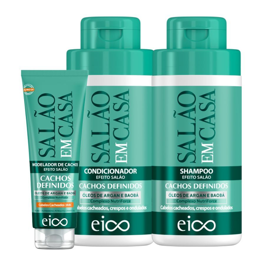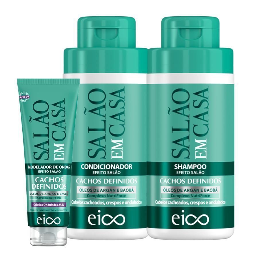 Eico Salão Em Casa Cachos Definidos Shampoo e Condicionador 450ml + Modeladores Curvas 2ABC 3ABC