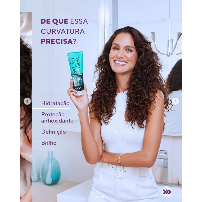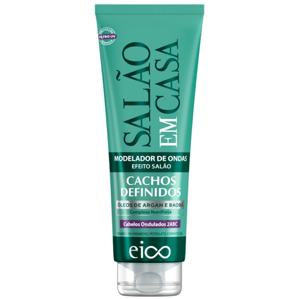 Eico Leave-in Creme Hidrata Nutre Modelador Ondulados e Proteção Térmica Salão Em Casa Cachos Definidos 250ml Filtro UV