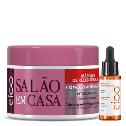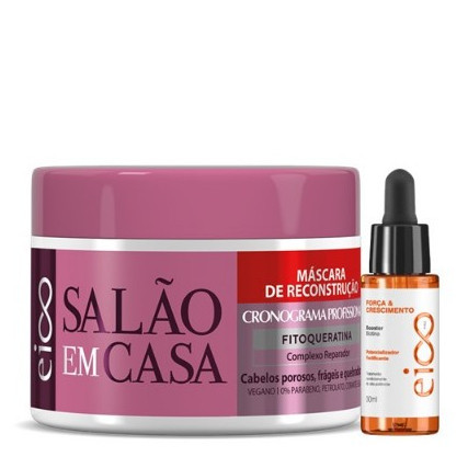 Eico Máscara Reconstrução Salão Em Casa Cronograma 270g e Booster Eico Pro Tratamento 30ml.