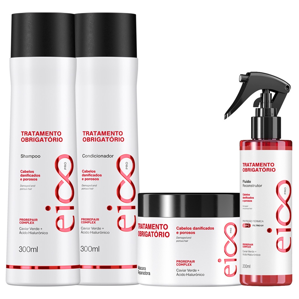 Eico Pro Tratamento Obrigatório Shampoo Sem Sal e Condicionador Leave-in + Máscara Tratamento + Fluído Protetor Térmico