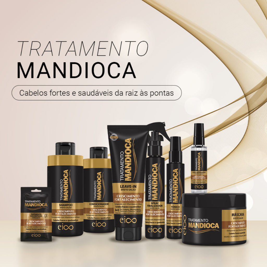 Eico Tratamento Mandioca Força Crescimento Shampoo Sem Sal 800ml Condicionador Leave-in 450ml