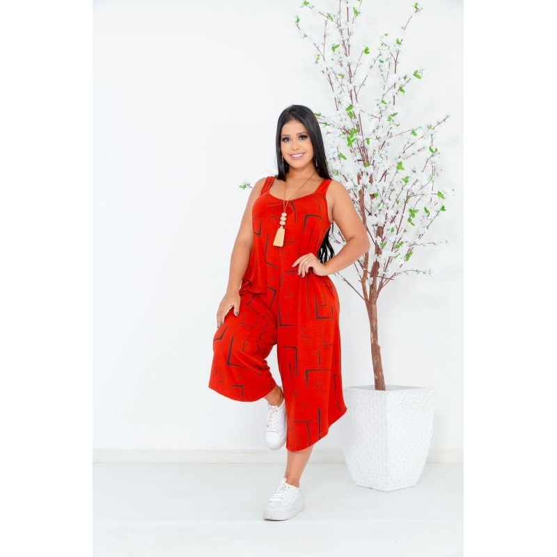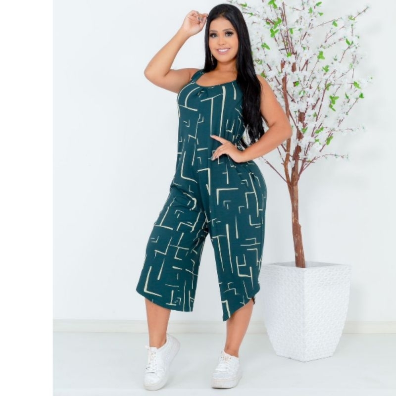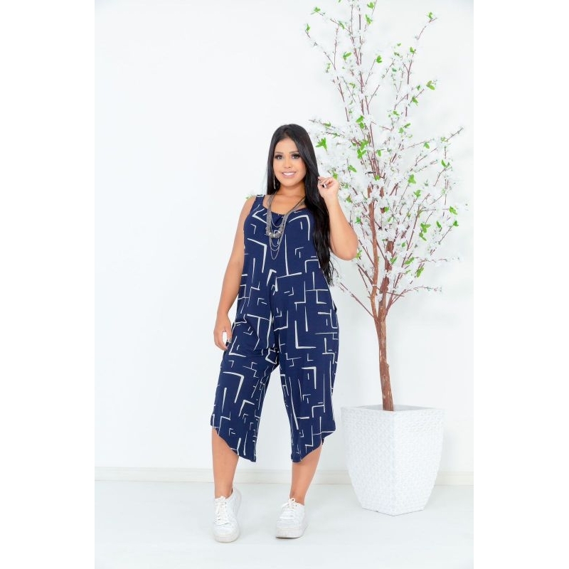 Macacao Macaquinho regata Pantacout estampado lindo plus size moda feminina