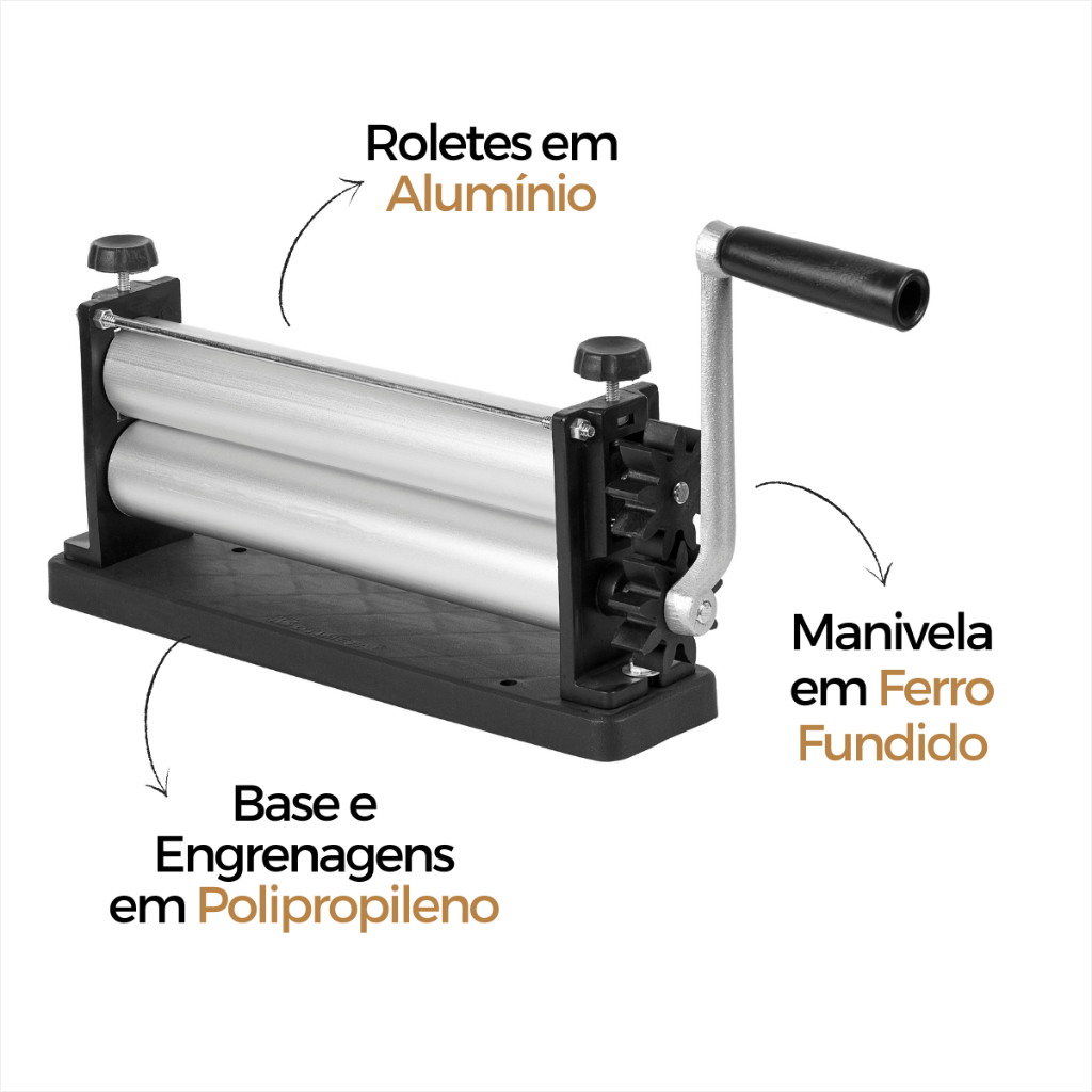 Cilindro Abridor Massa Manual para Pão Pastel Macarrão Pizza Salgado Laminador Standard Botini Alumínio