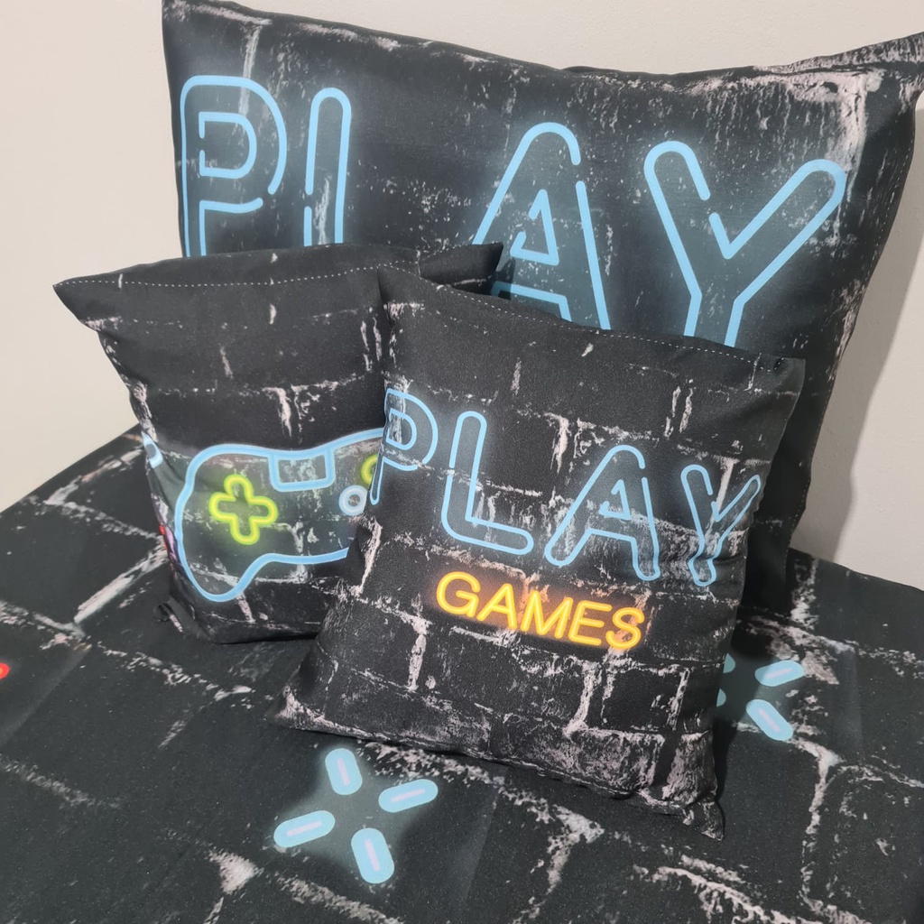 Jogo De Quarto Infantil Colcha+ Cortina Tema Games 05 Pç