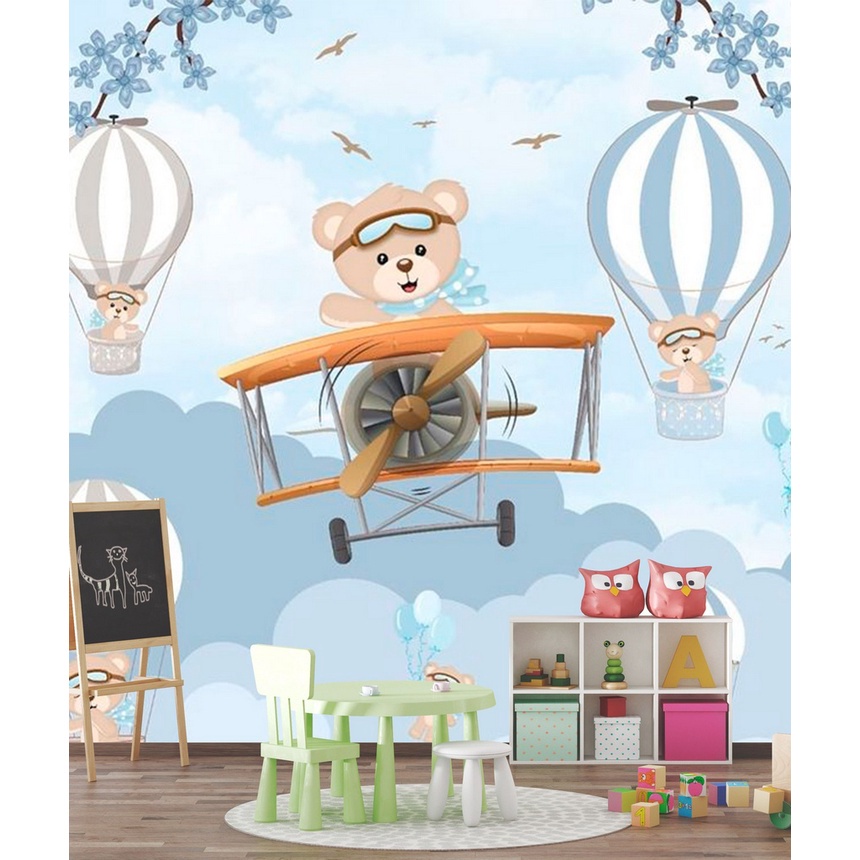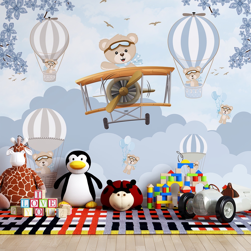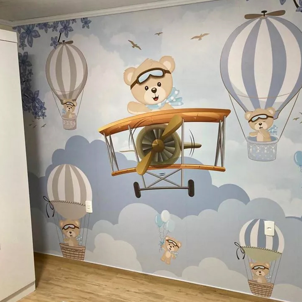Papel de Parede Infantil Urso Piloto e Balões