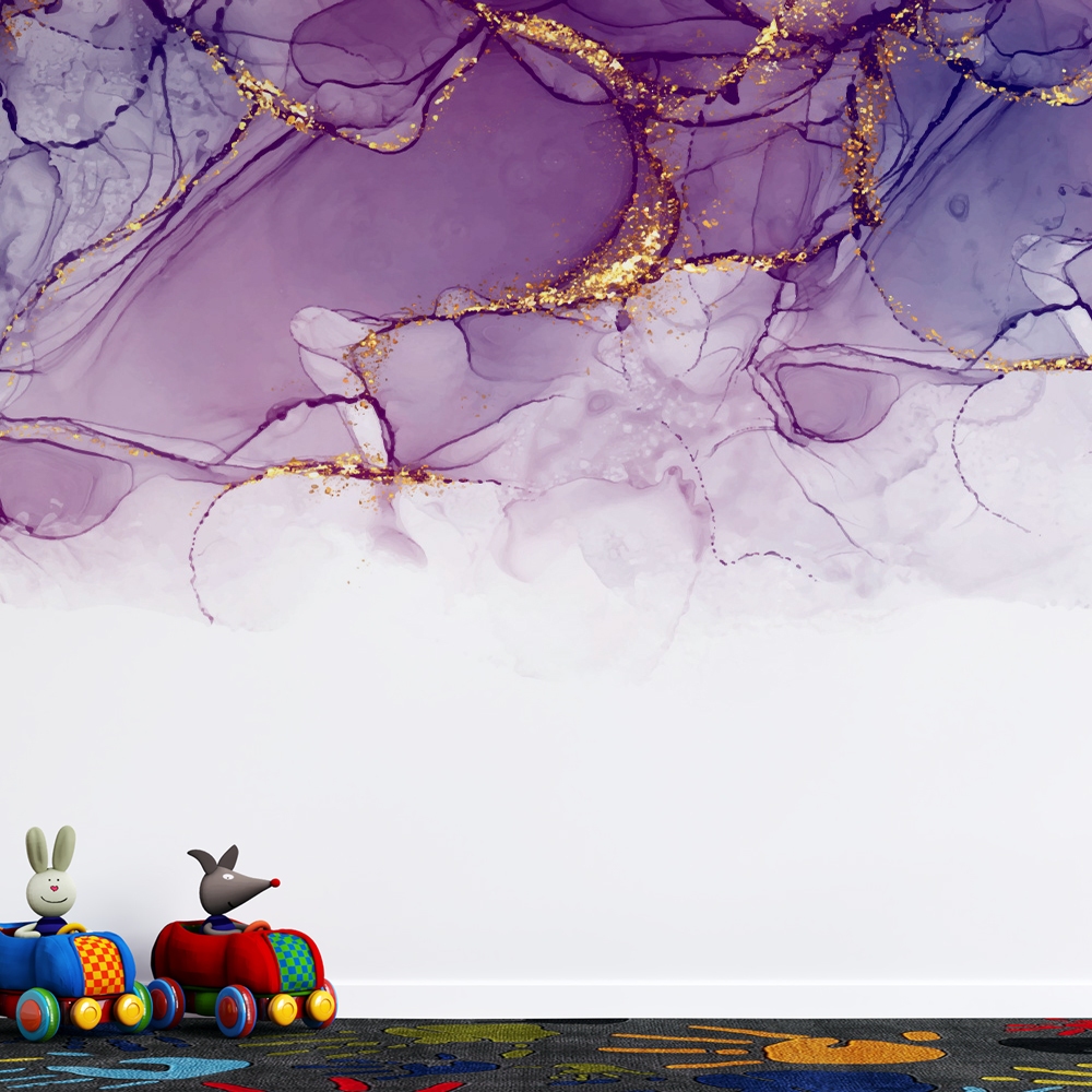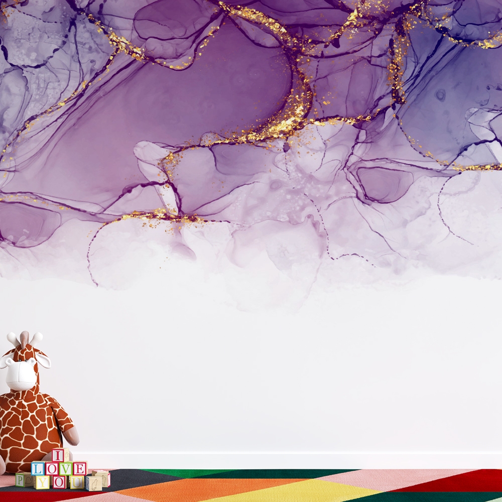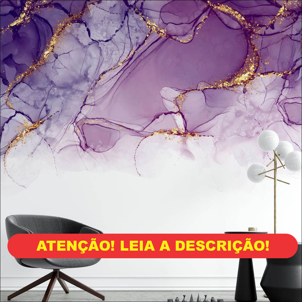 Papel de Parede Aquarela roxo com detalhes em dourado