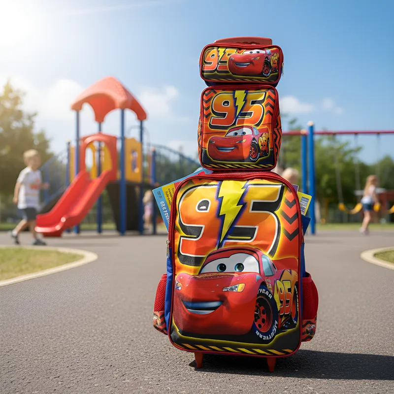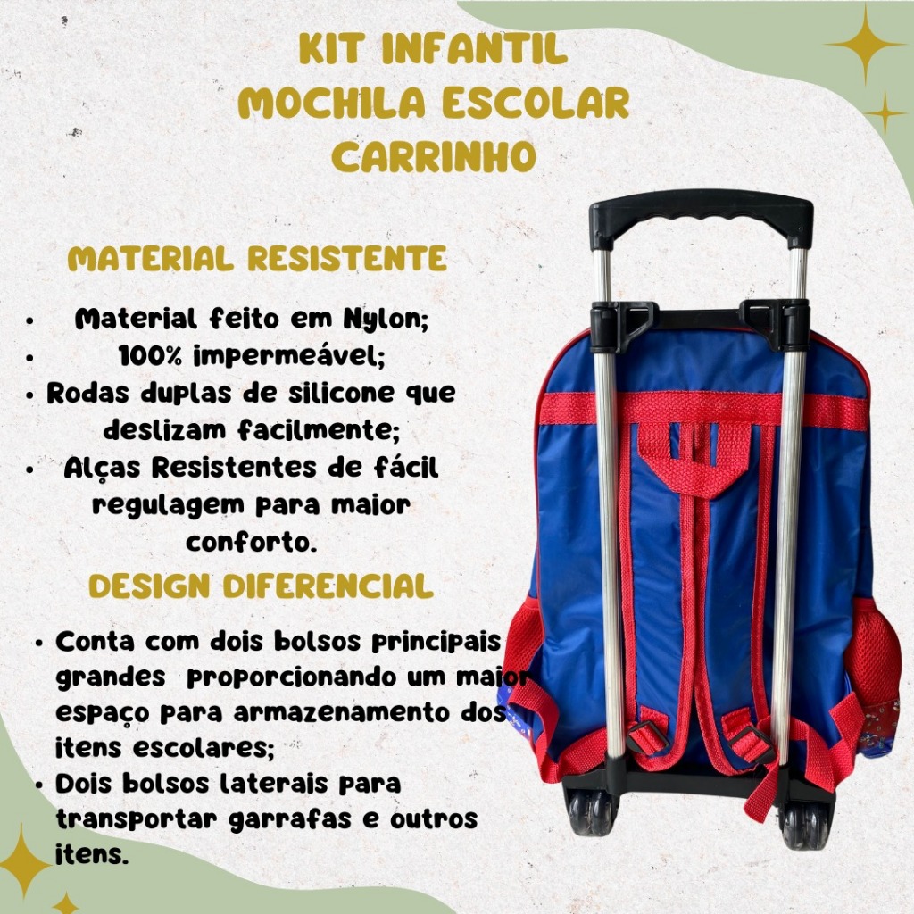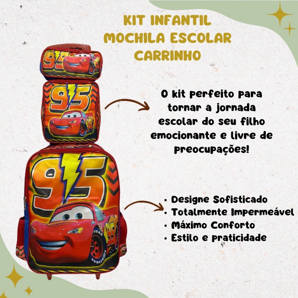 Mochila Escolar Carros Mcqueen Kit Com Lancheira E Estojo Menino e Menina Impermeável de Carrinho
