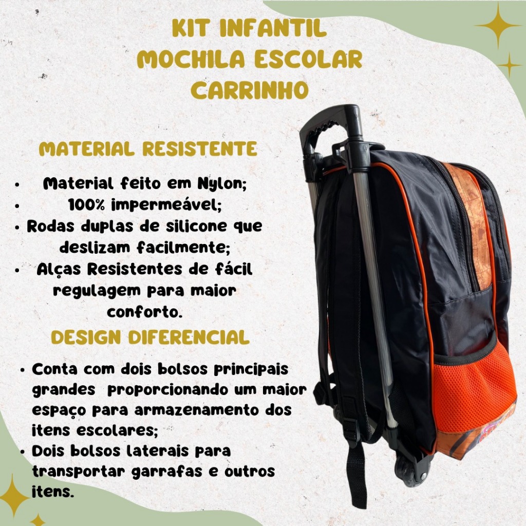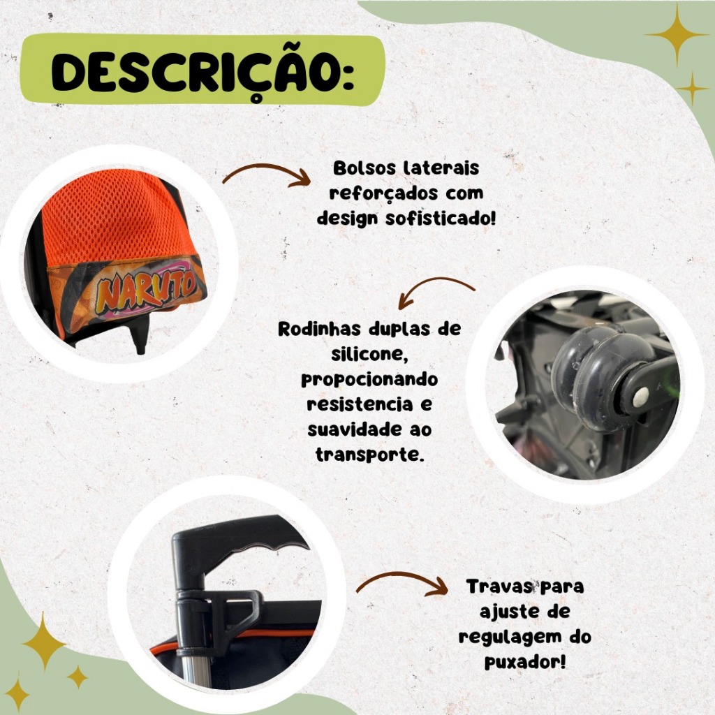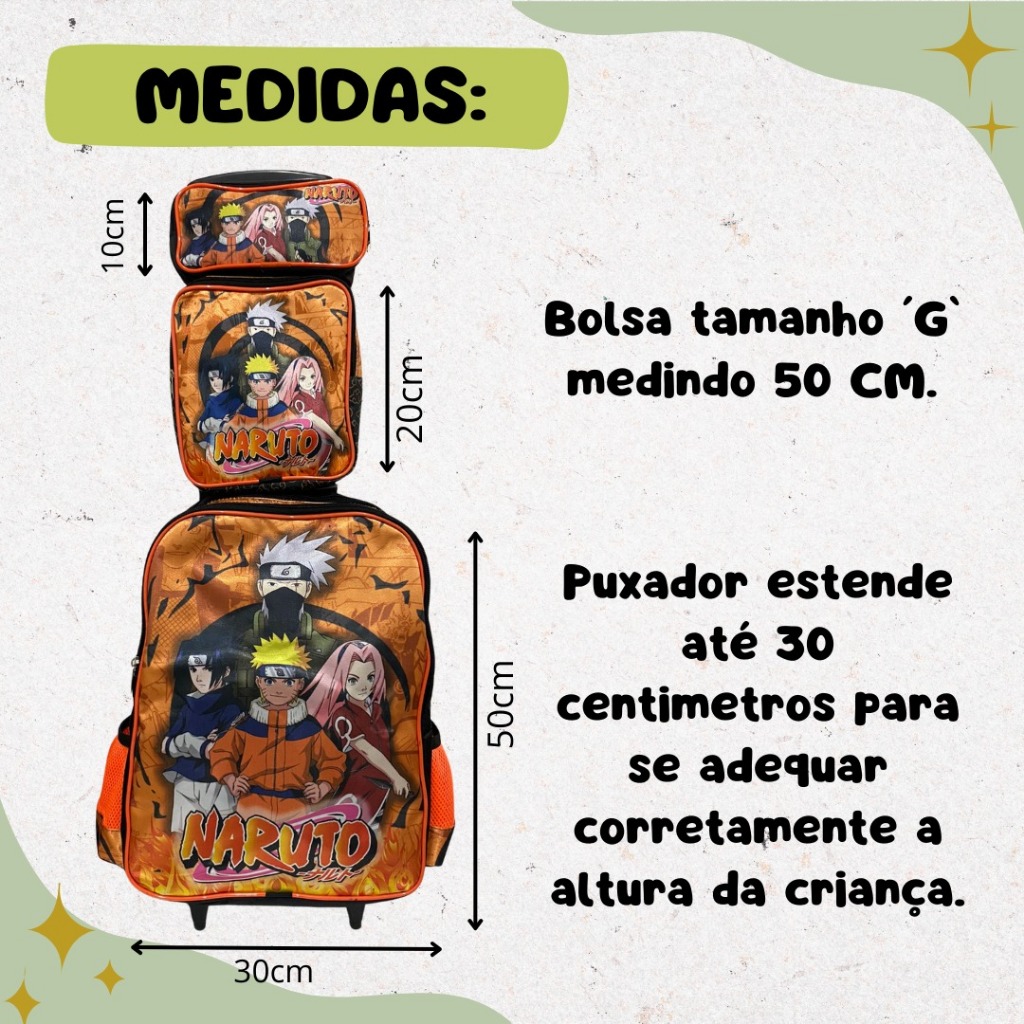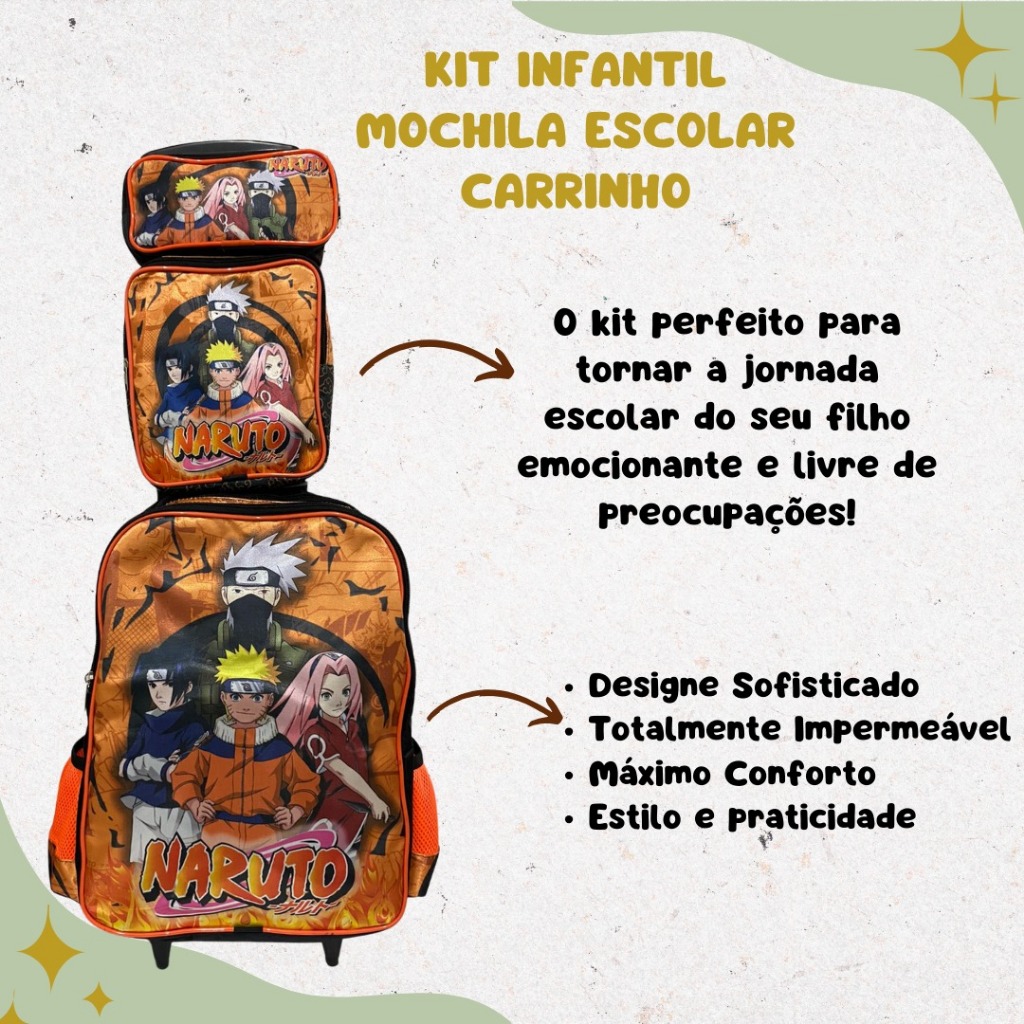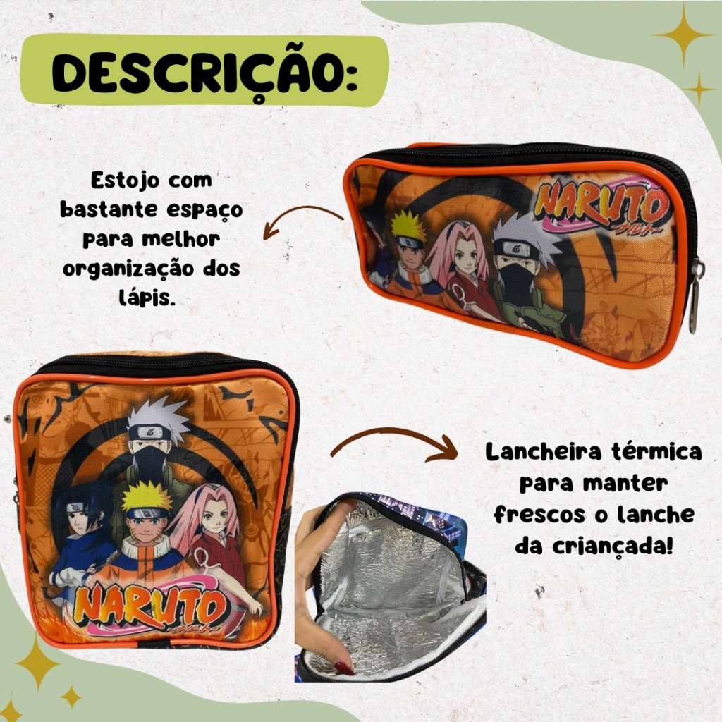 Mochila Escolar Naruto Kit Com Lancheira E Estojo Menino e Menina Impermeável de Carrinho