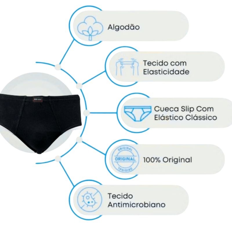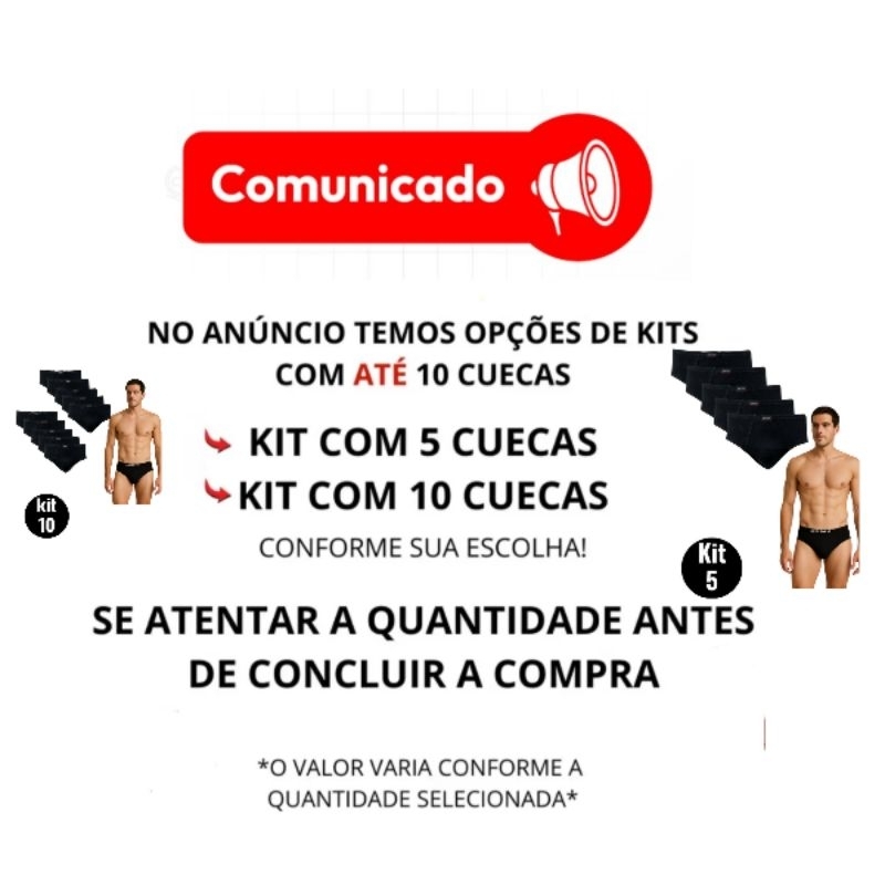 Kit Cuecas masculina tradicional com forro 100% algodao NA COR -PRETO