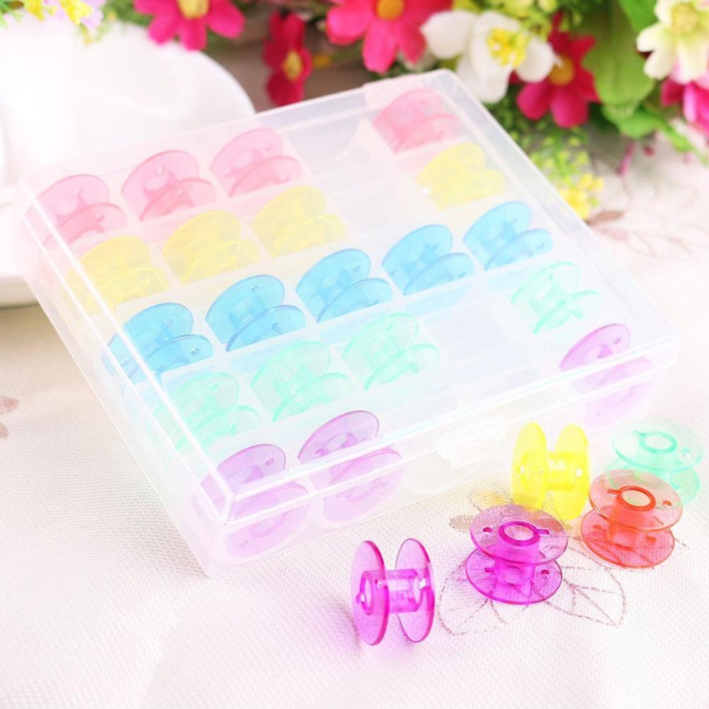 Kit 25 Bobinas de Plástico Alta Ou Baixa Para Máquina De Costura Com Estojo