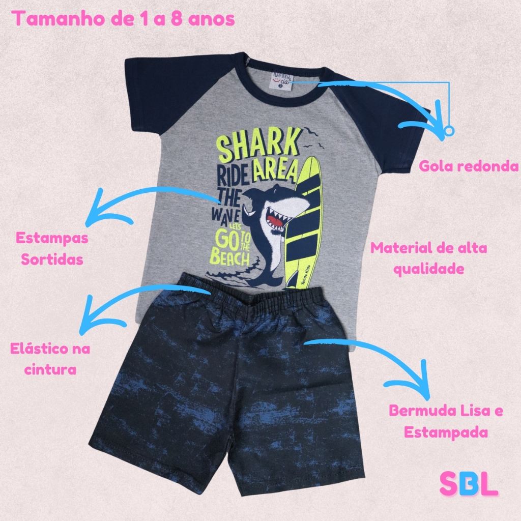 Kit de 4 a 10 Peças Conjunto Verão Menino Calor Infantil Masculino 1 a 8 anos (Camisetas + Bermudas)