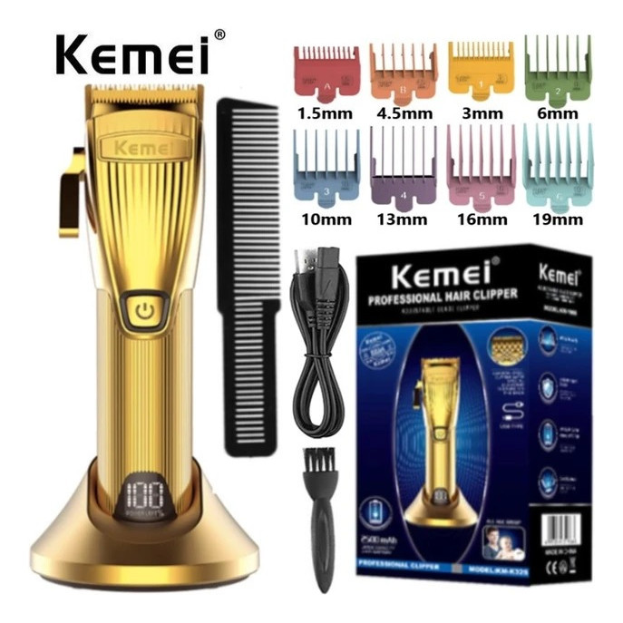 Máquina De Corte Dourada Kemei K-32s E Kit Tesouras Douradas