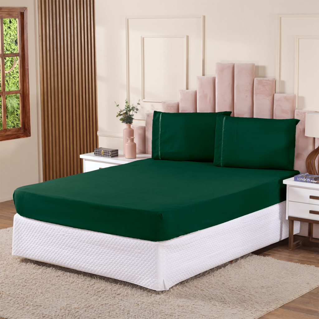 Jogo de Lençol 3 Peças 400 Fios Cama Casal Padrão Micropercal Ponto Palito Hotel Toque Macio