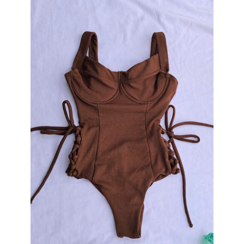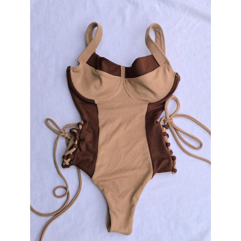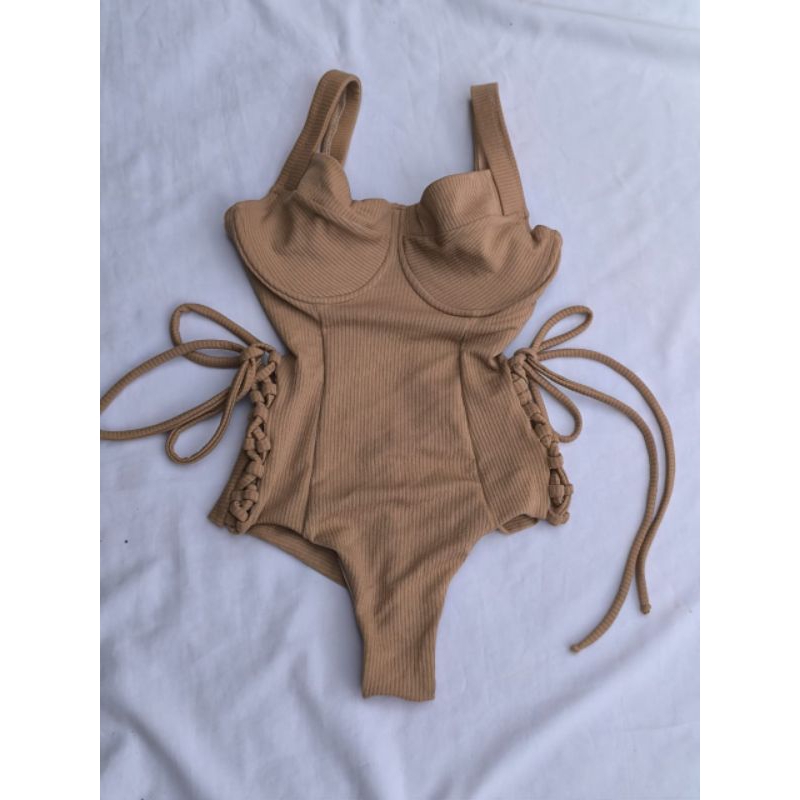 Maiô Lali Mocha mousse com amarração nas laterais.