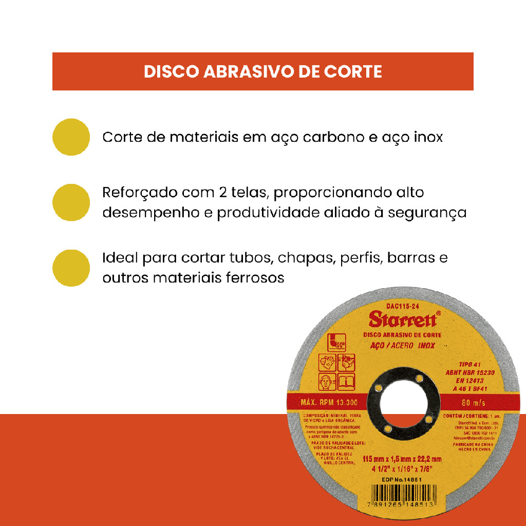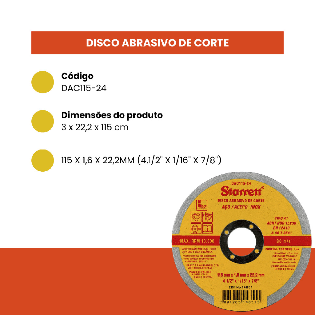 Discos Abrasivos de Corte, Starrett, Dac115-24