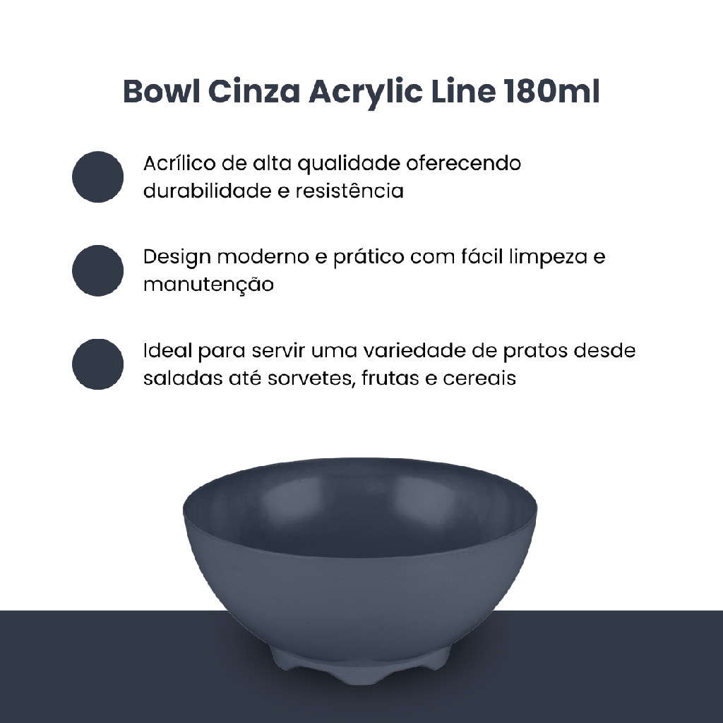 Bowl Tigela Multiuso Acrilico Cinza Acrylic Line 180 Ml