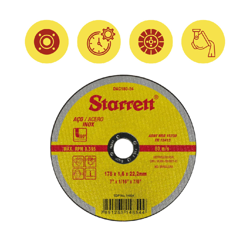 Kit 12 Disco Abrasivo Corte 178 16 222Mm Starrett DAC180-24